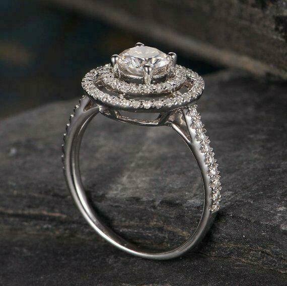 2.5ct Round Cut Diamond Engagement Ring 14k White Gold Over Cocktail Double Halo