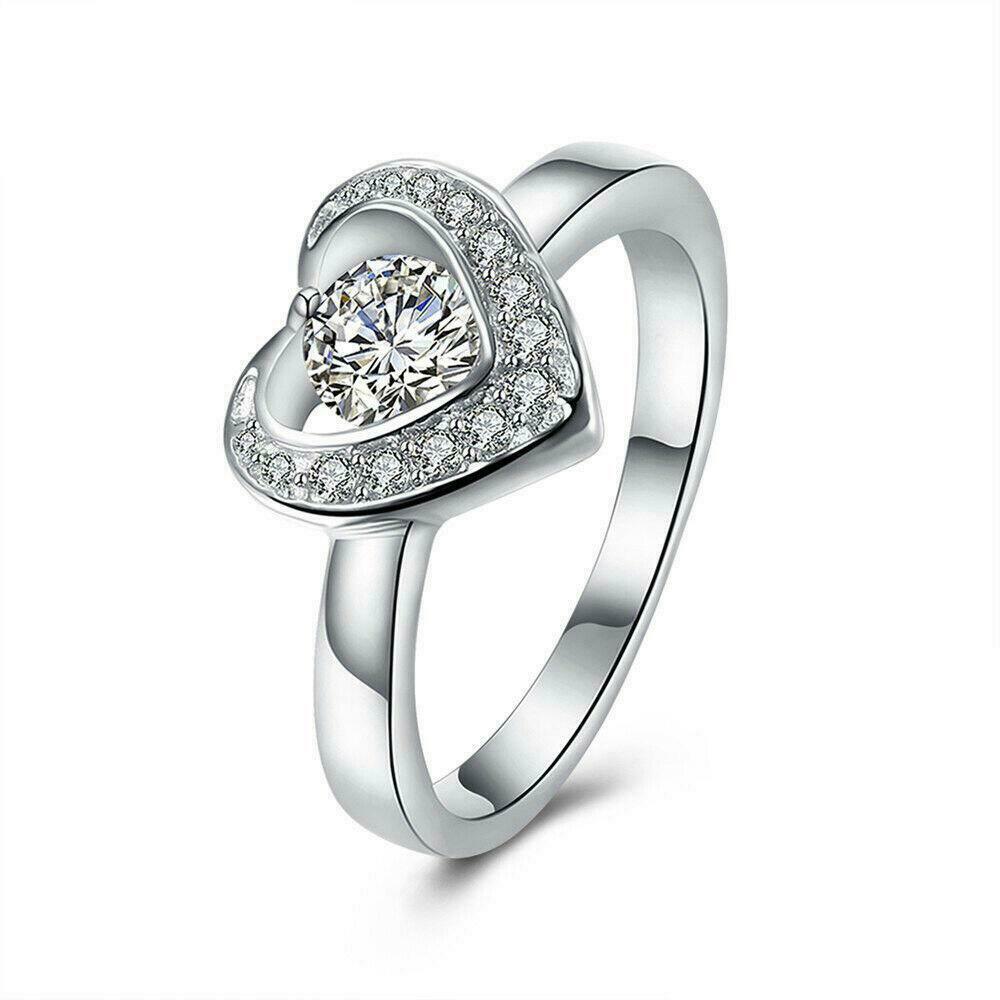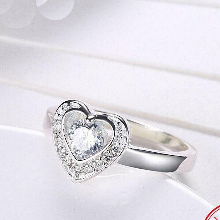 2.5ct Round Cut Diamond Engagement Ring 14k WhiteGold Over Heart Shape Solitaire
