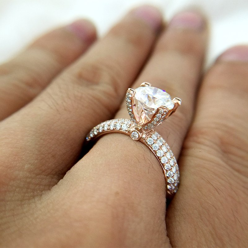 2.5ct Round Cut Diamond Engagement Ring 18k Rose Gold Finish Accents Solitaire