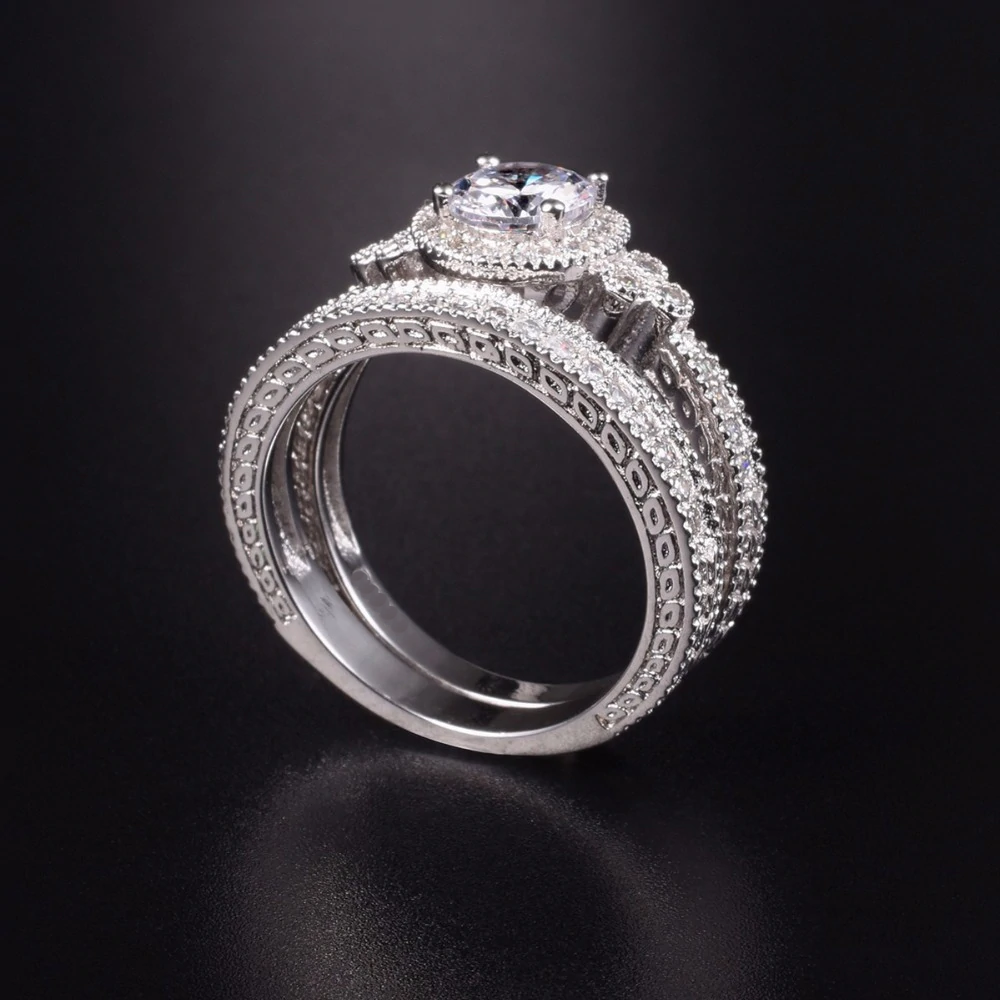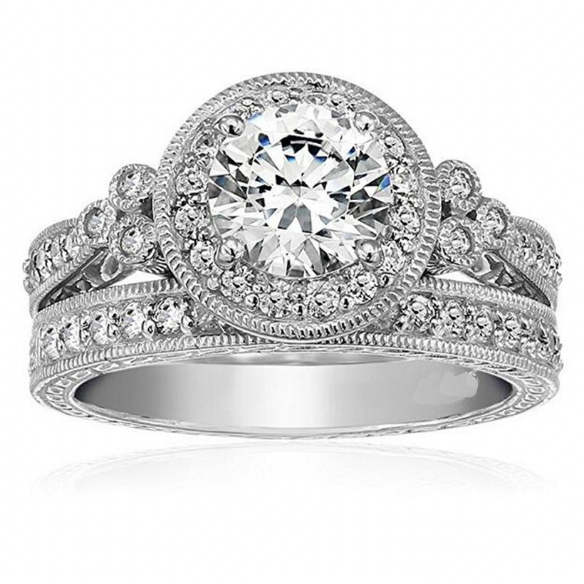 2.5ct Round Cut Diamond Engagement Ring 18k White Gold Finish Vintage Bridal Set