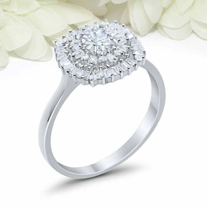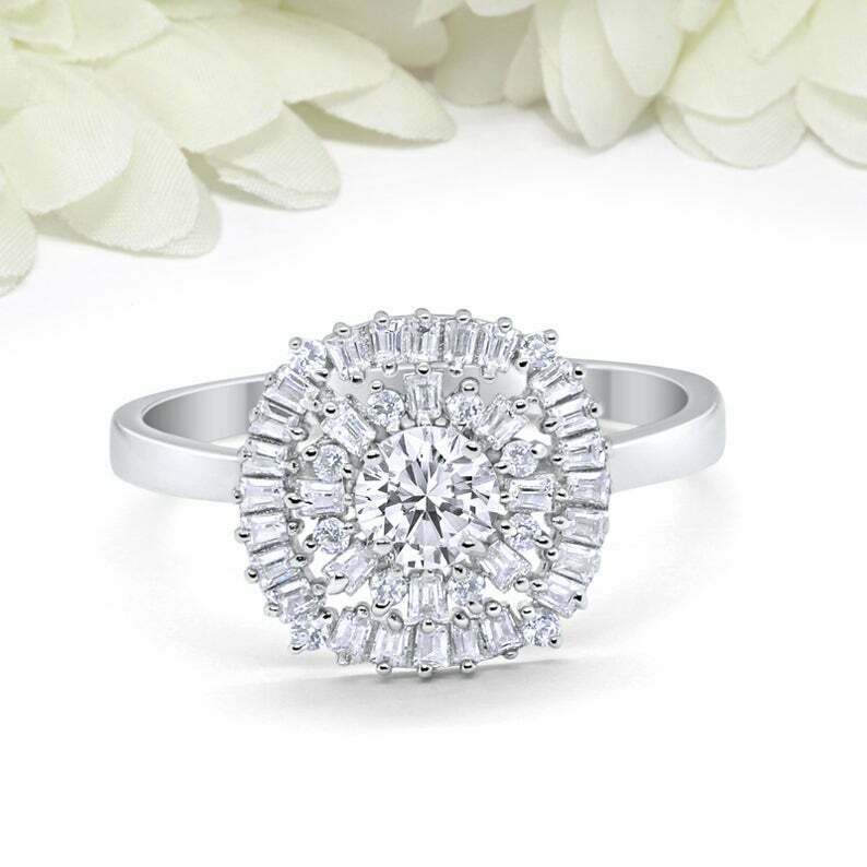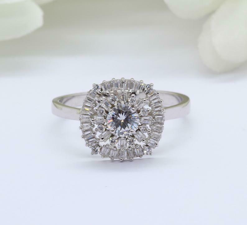 2.5ct Round Cut Diamond Engagement Ring Cocktail Art Deco 14k White Gold Finish
