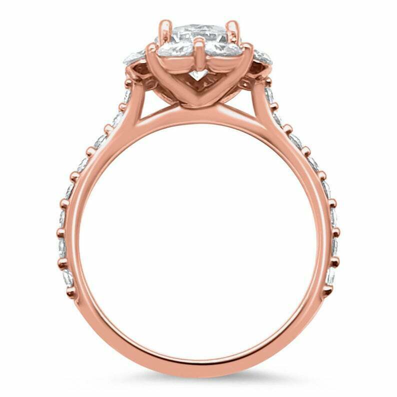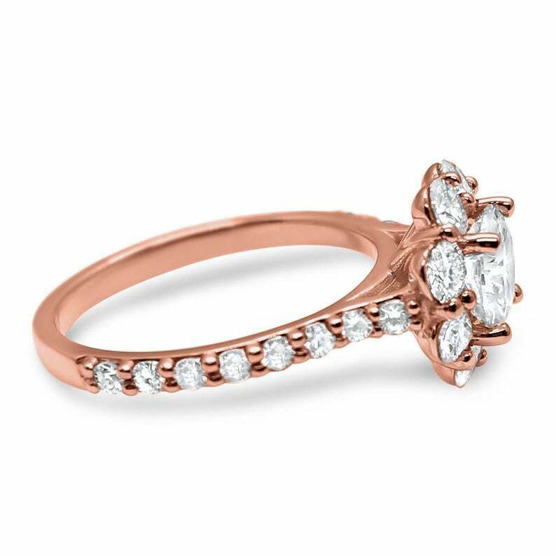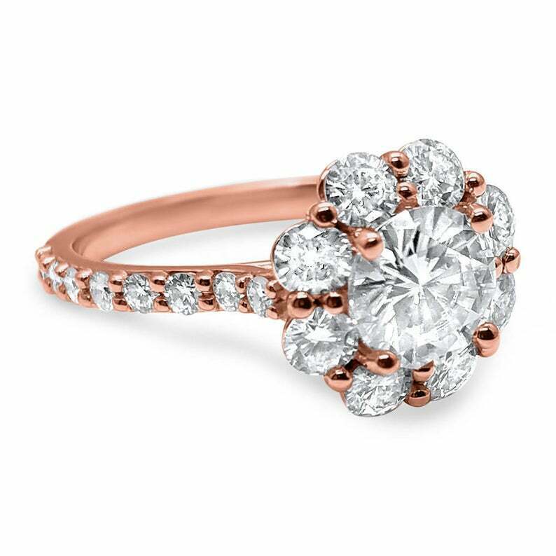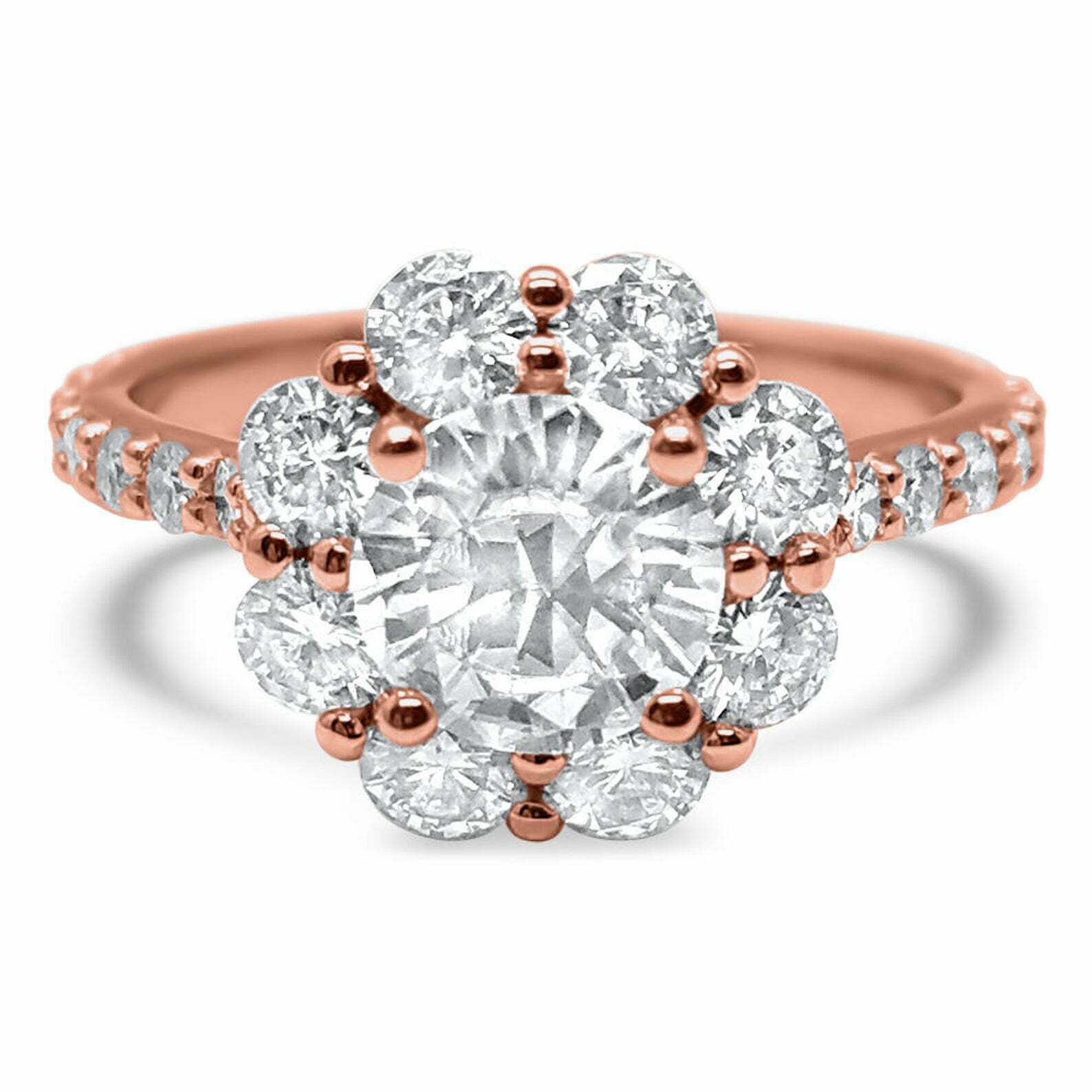 2.5ct Round Cut Diamond Engagement Ring Halo Floral Solitaire 14k Rose Gold Over