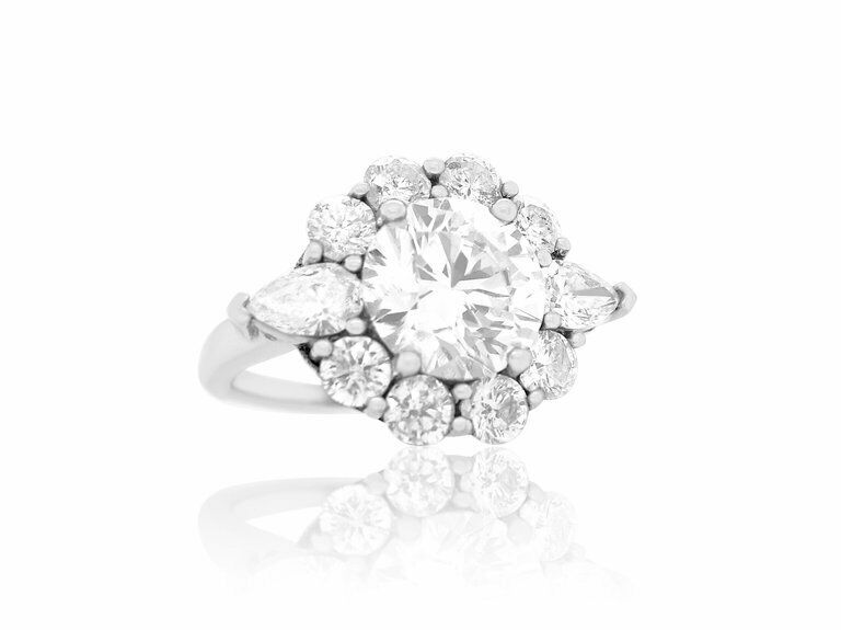 2.5ct Round Cut Diamond Engagement Ring Halo Pear Accents 14k White Gold Finish