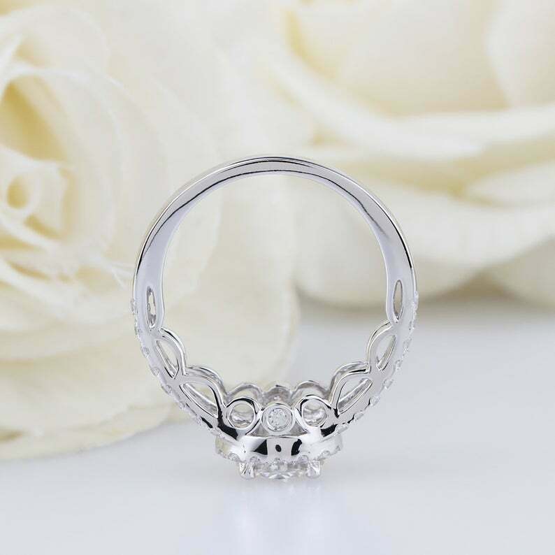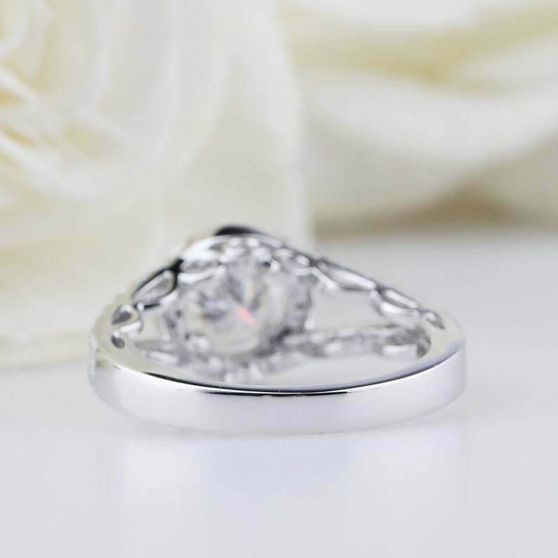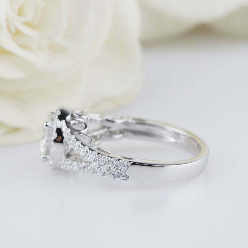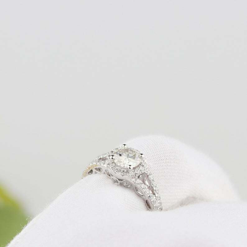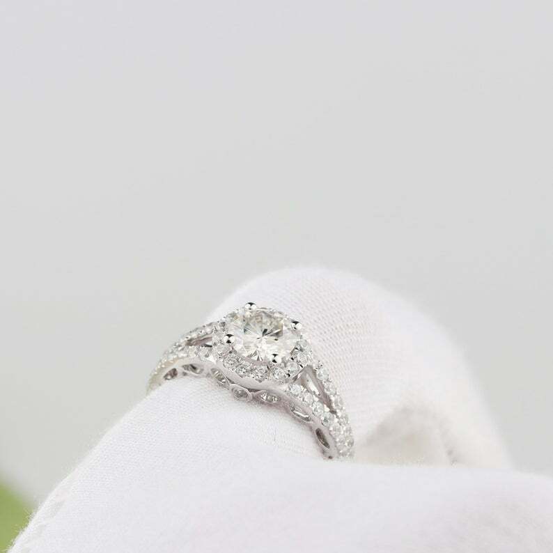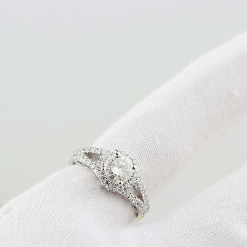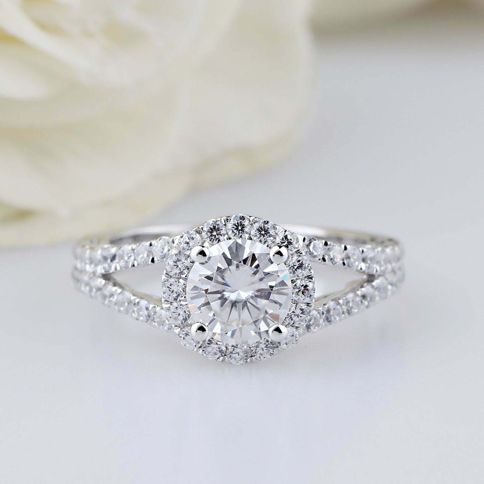 2.5ct Round Cut Diamond Engagement Ring Halo Split Shank 14k White Gold Finish