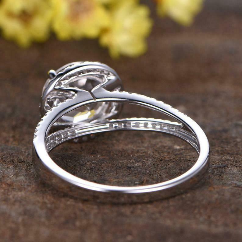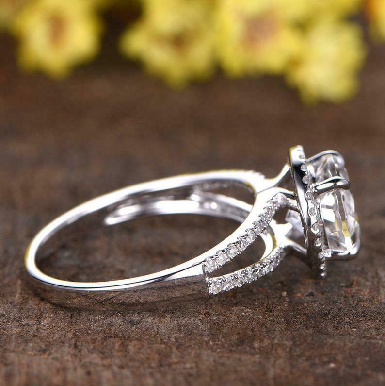 2.5ct Round Cut Diamond Engagement Ring Split Band Halo 14k White Gold Finish