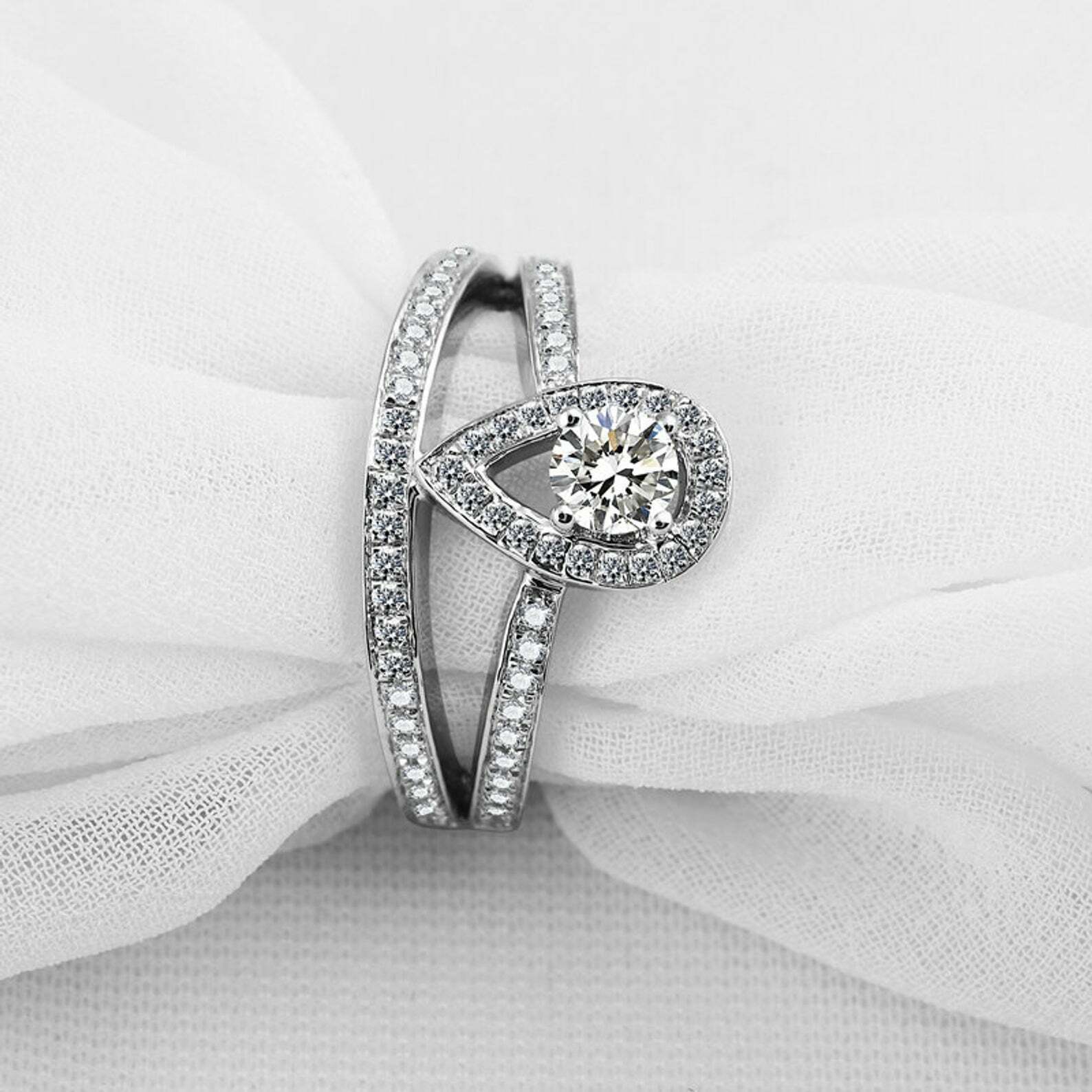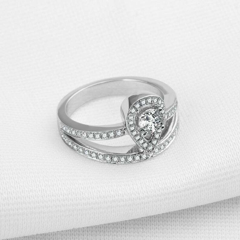 2.5ct Round Cut Diamond Engagement Ring Split Shank Halo 14k White Gold Finish