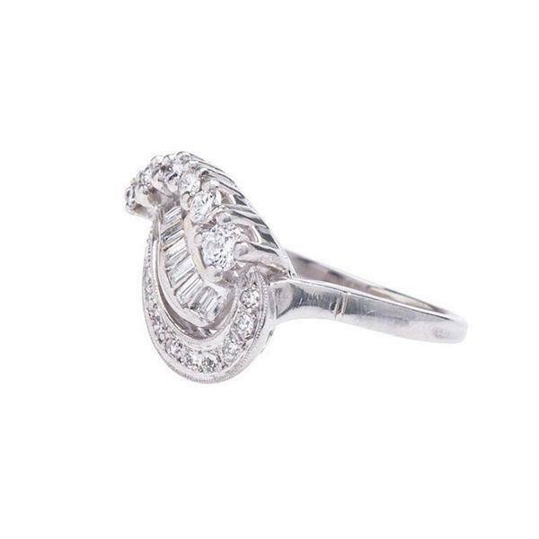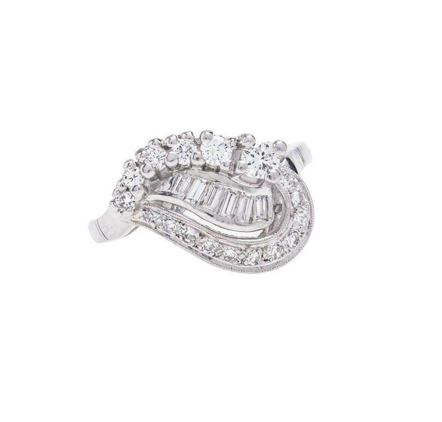 2.5ct Round Cut Diamond Engagement Ring Swirl Cluster Vintage 14k White Gold Over