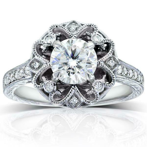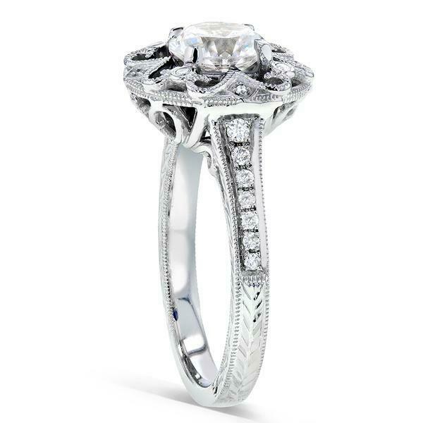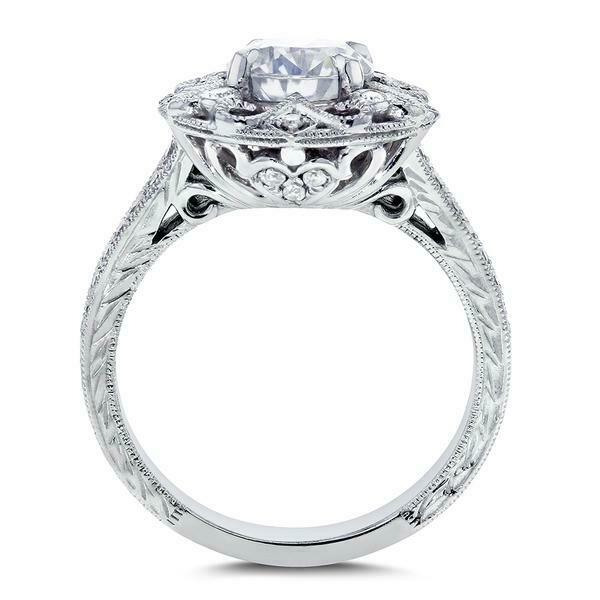 2.5Ct Round Cut Diamond Milgrain Vintage Engagement Ring 14K White Gold Finish
