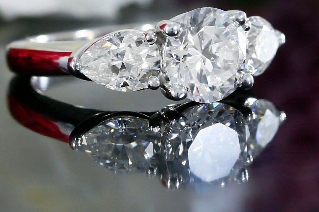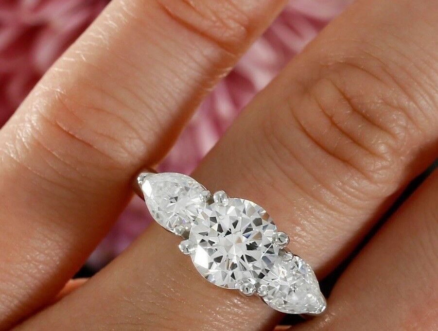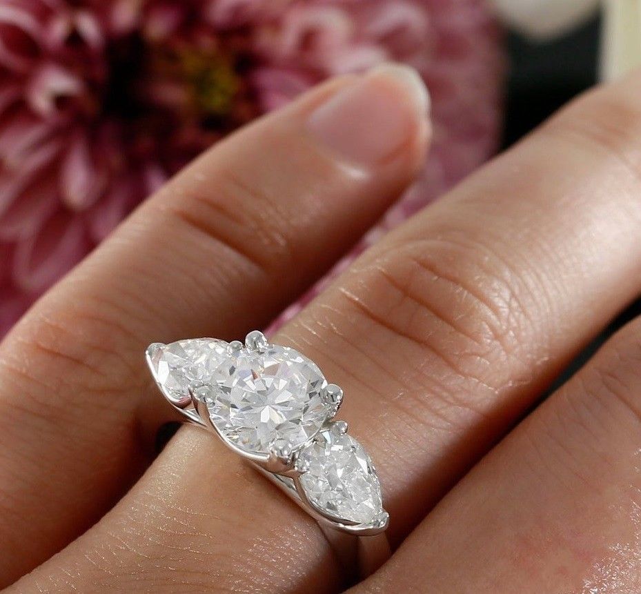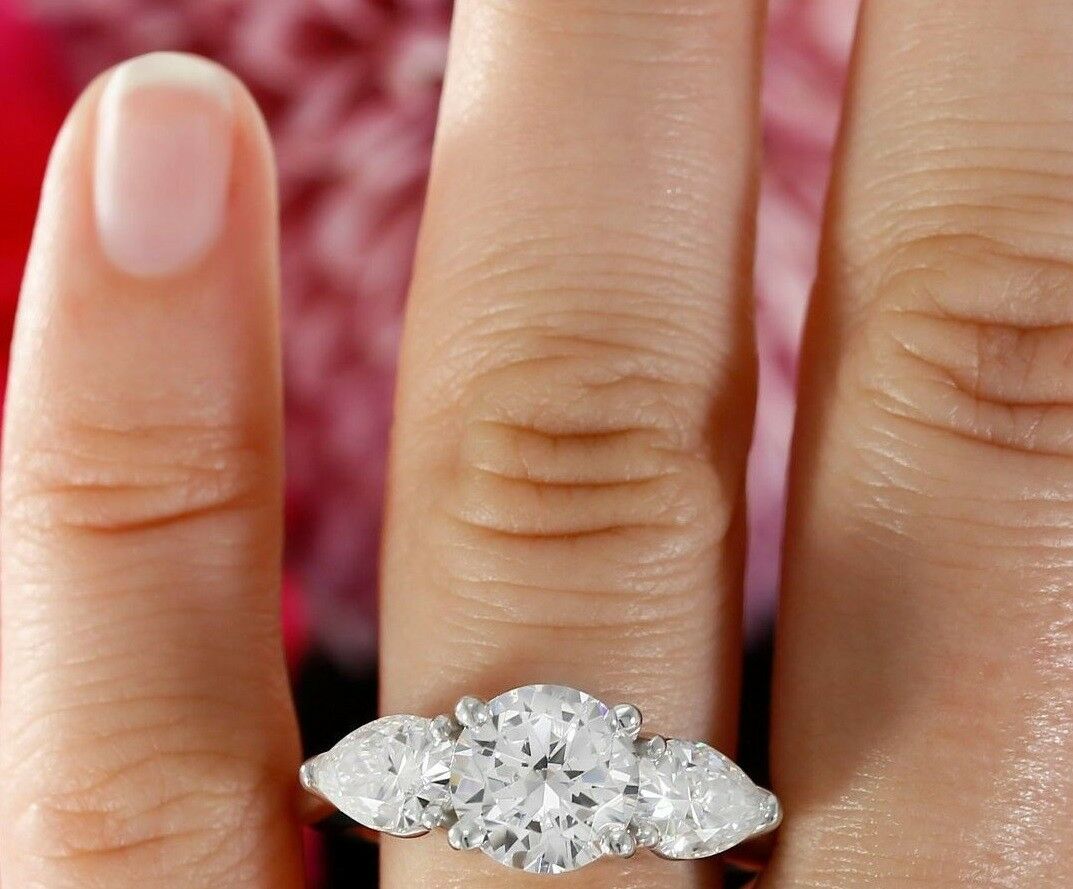 2.5ct Round Cut Diamond Pear Side Trilogy Engagement Ring 14k White Gold Finish
