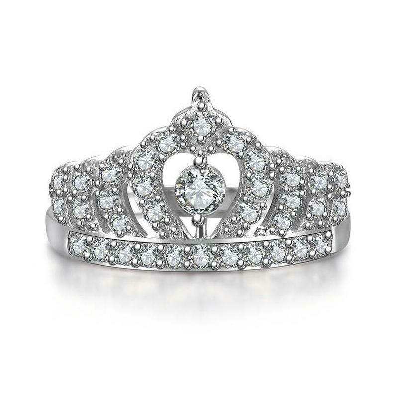 2.5ct Round Cut Diamond Princess Crown Engagement Ring Band 14k WhiteGold Finish
