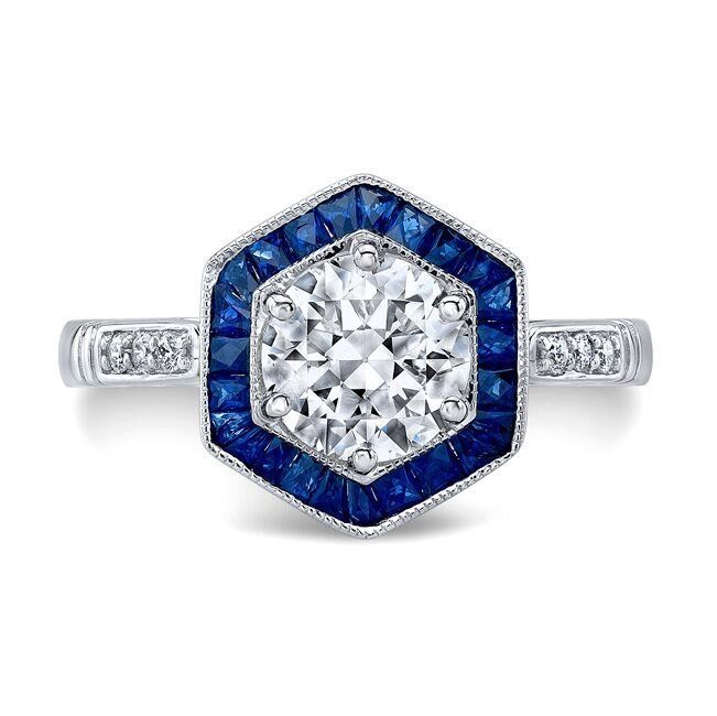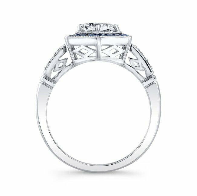 2.5ct Round Cut Diamond Sapphire Art Deco Engagement Ring 14k White Gold Finish