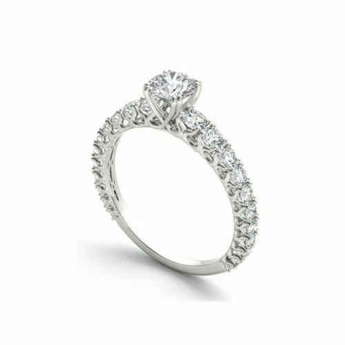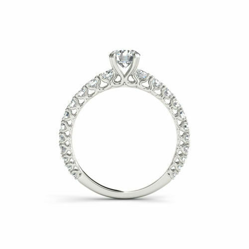 2.5Ct Round Cut Diamond Studded Accent Solitaire Ring 14K White Gold Finish