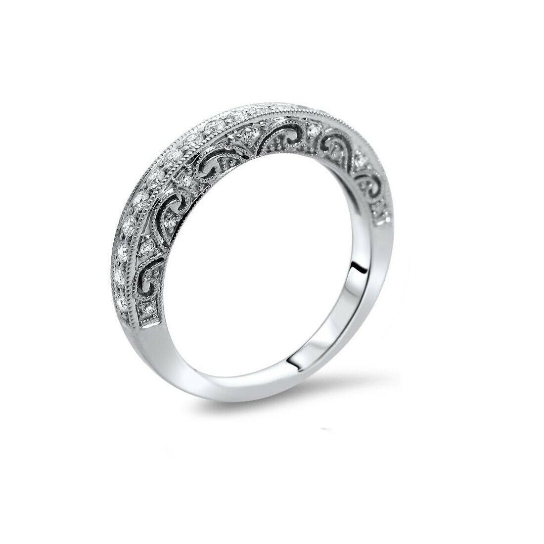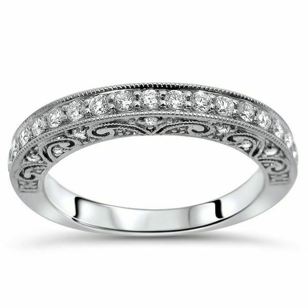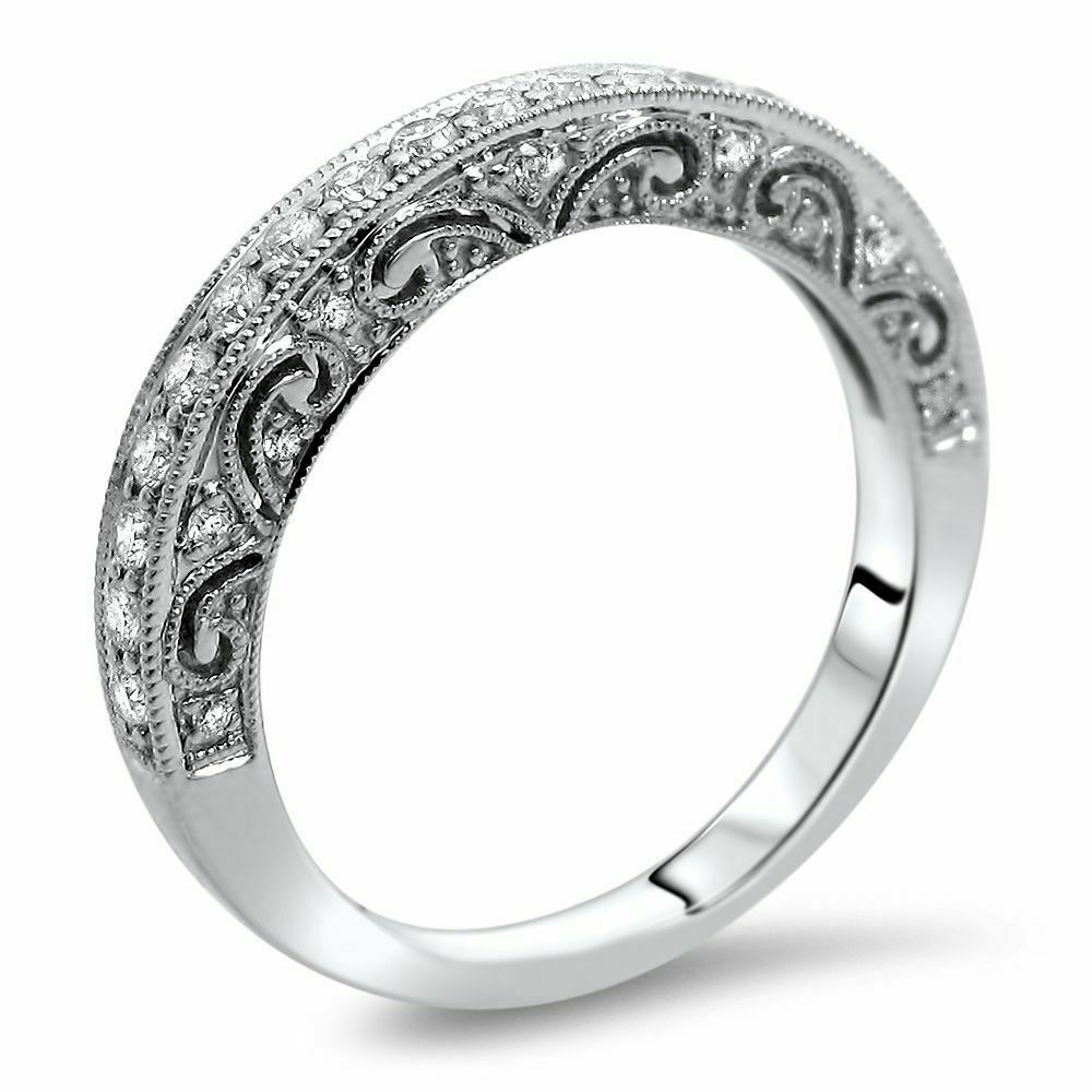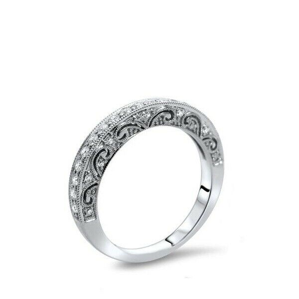 2.5Ct Round Cut Diamond Vintage Wedding Band Ring Women 14K White Gold Finish