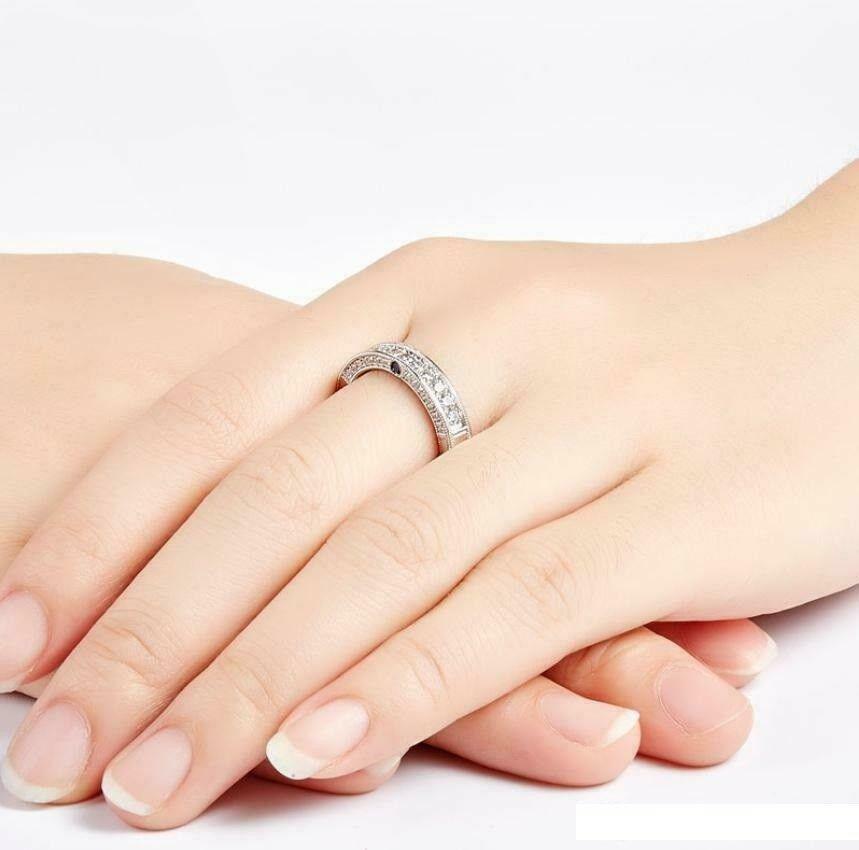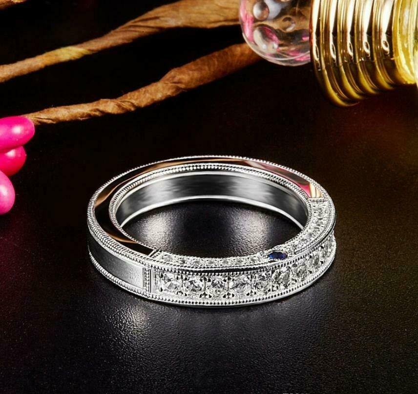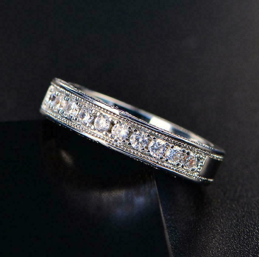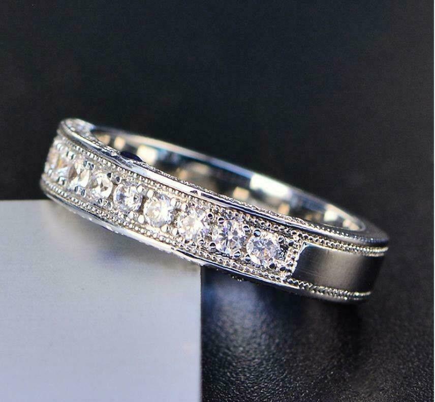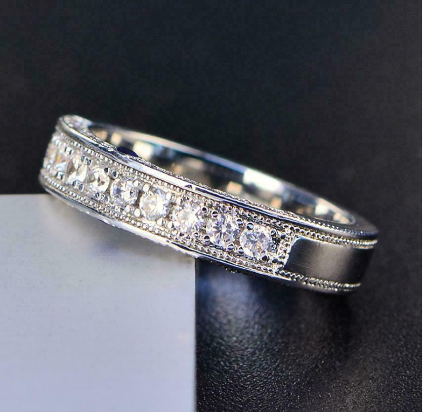 2.5ct Round Cut Diamond Wedding Ring Band 14k White Gold Over Milgrain Eternity