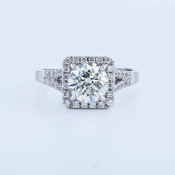 2.5Ct Round Cut DVVS1 Diamond Square Halo Engagement Ring 14K White Gold Finish