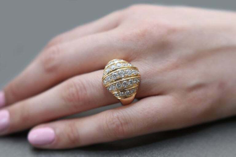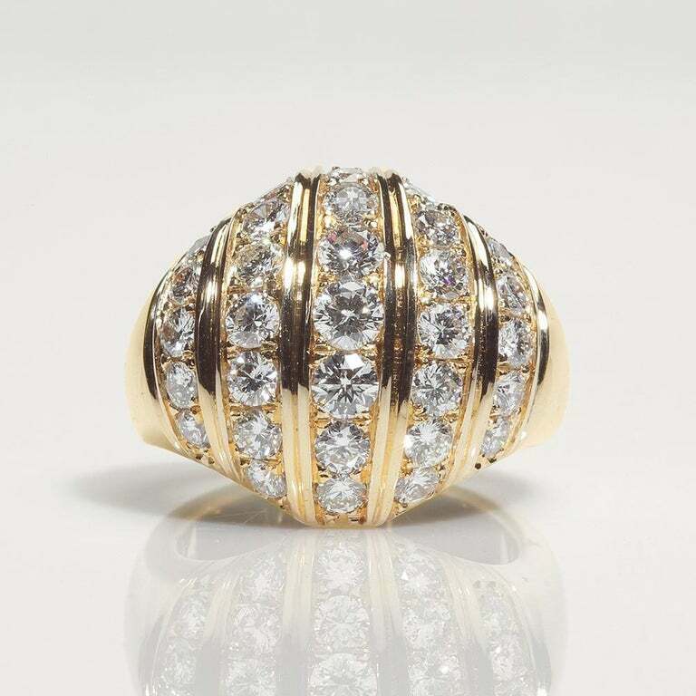 2.5ct Round Cut VVS1 Diamond Engagement Ring Five Row Dome 14k YellowGold Finish