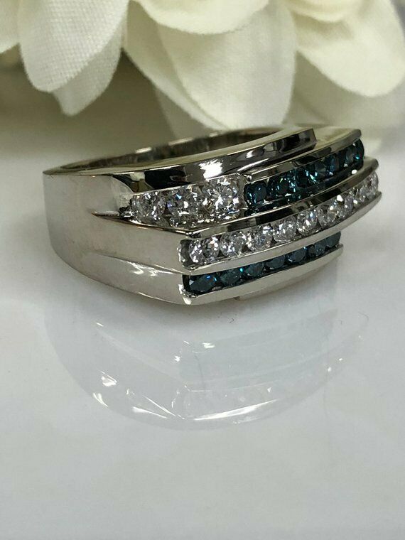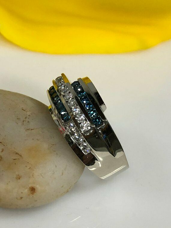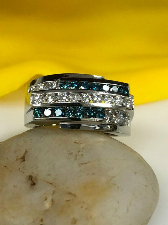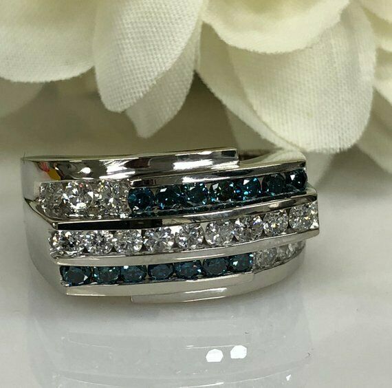 2.5ct Round Cut VVS1 Diamond Fancy Unisex Engagement Ring 14k White Gold Finish