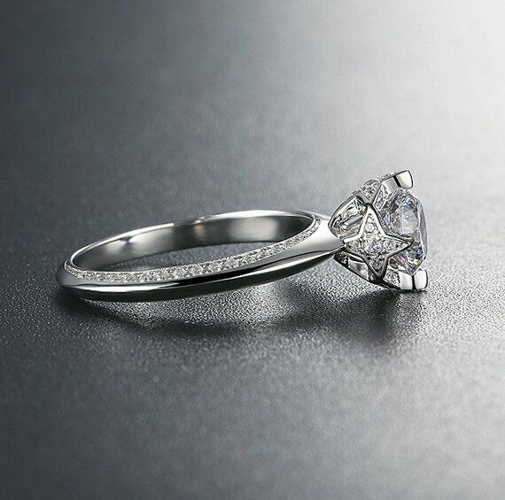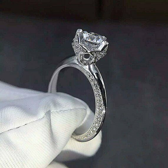 2.5ct Round Cut VVS1 Diamond Unique Design Engagement Ring 14k White Gold Finish