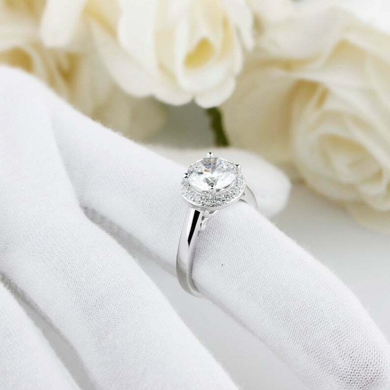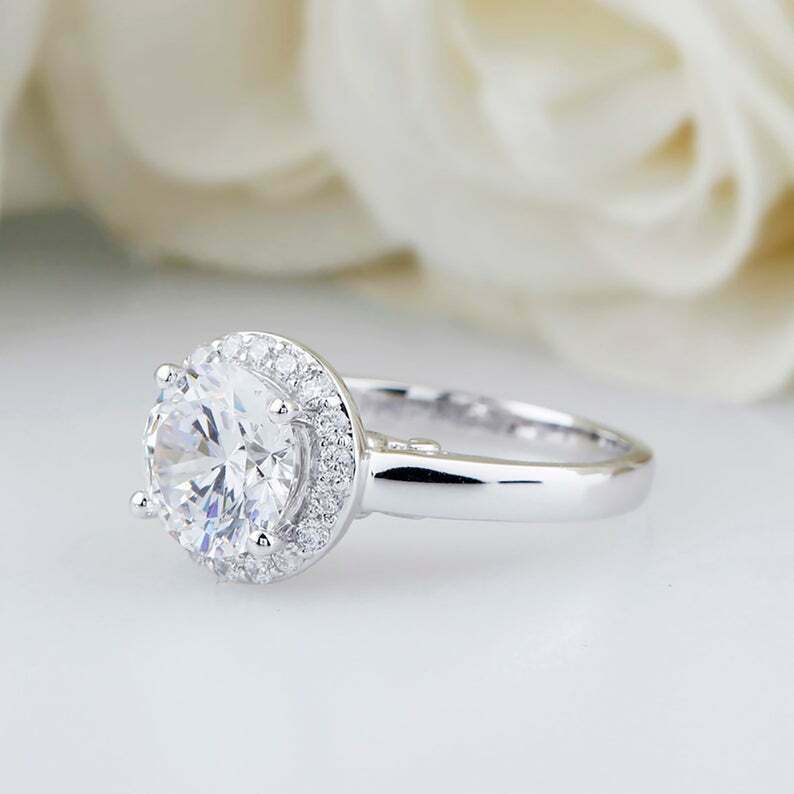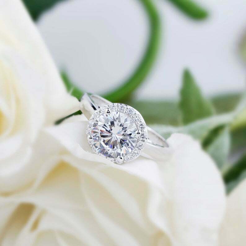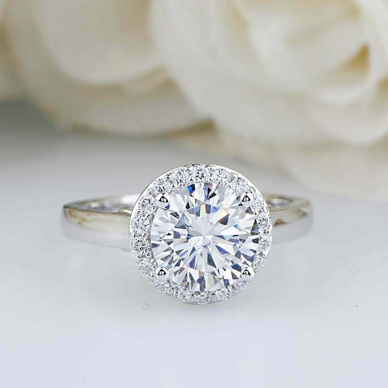 2.5ct Round Cut VVS1D Diamond Engagement Ring Halo Solitaire 14k White Gold Over