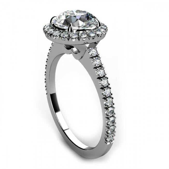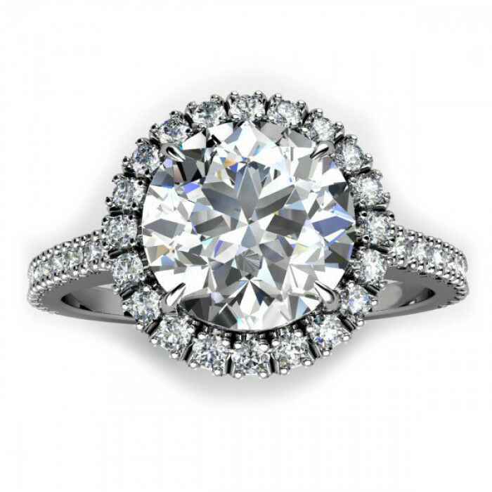 2.5ct Round Cut VVS1D Diamond Halo Design Engagement Ring 14k White Gold Finish