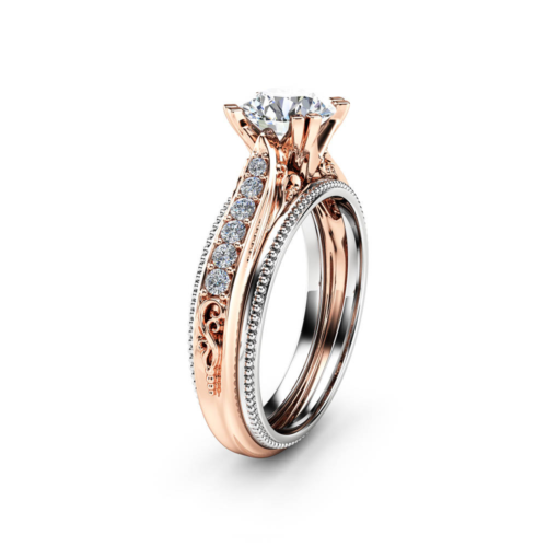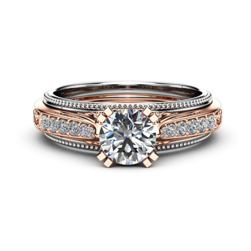 2.5ct Round Diamond Engagement Ring 14k Dual Tone Over Unique Art Deco Milgrain