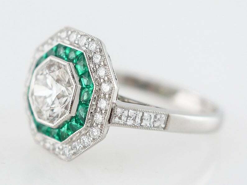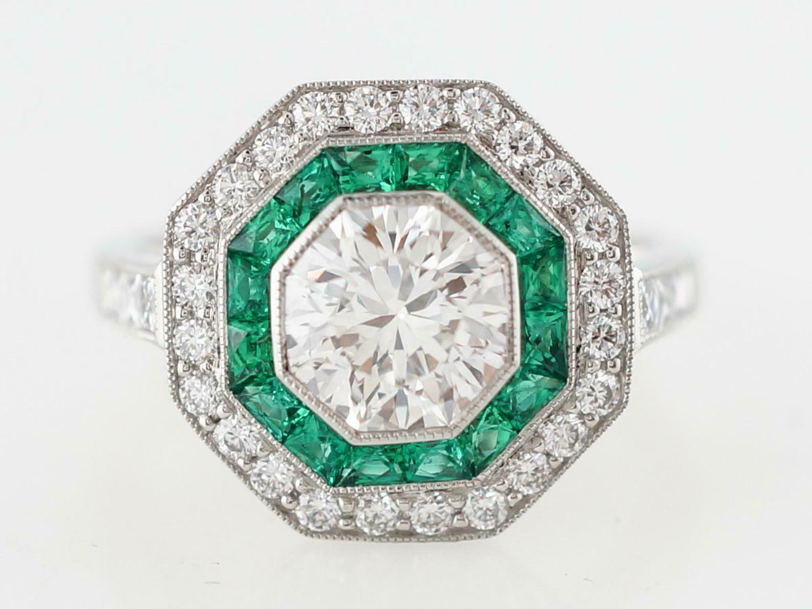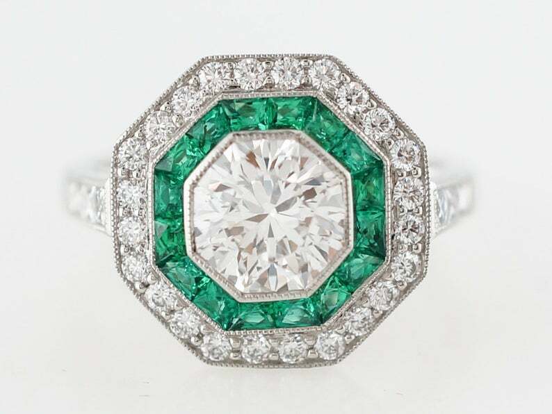 2.5ct Round Cut Diamond Engagement Ring Green Emerald Dual Halo 14k White Gold Over