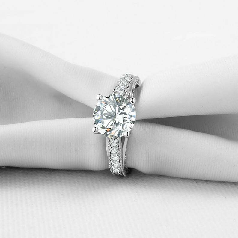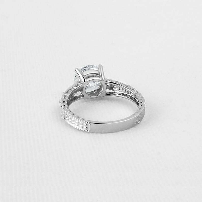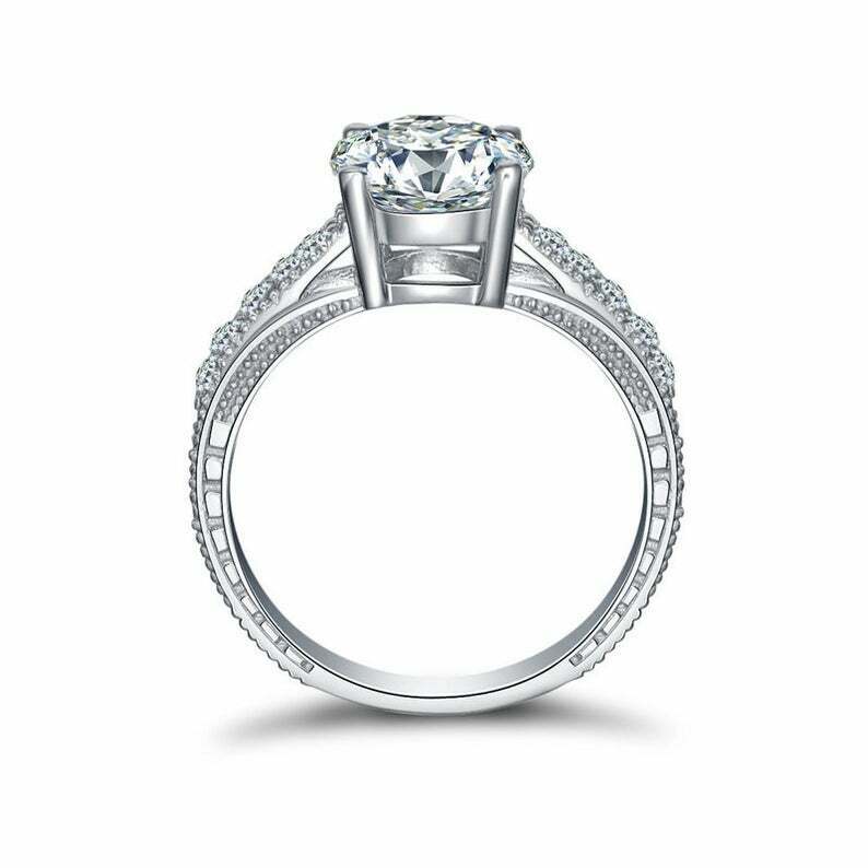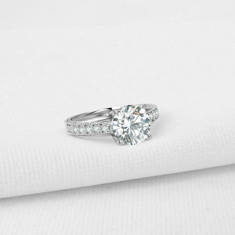 2.5ct Round Cut Diamond Engagement Ring Milgrain Accent Solitaire 14k White Gold Over