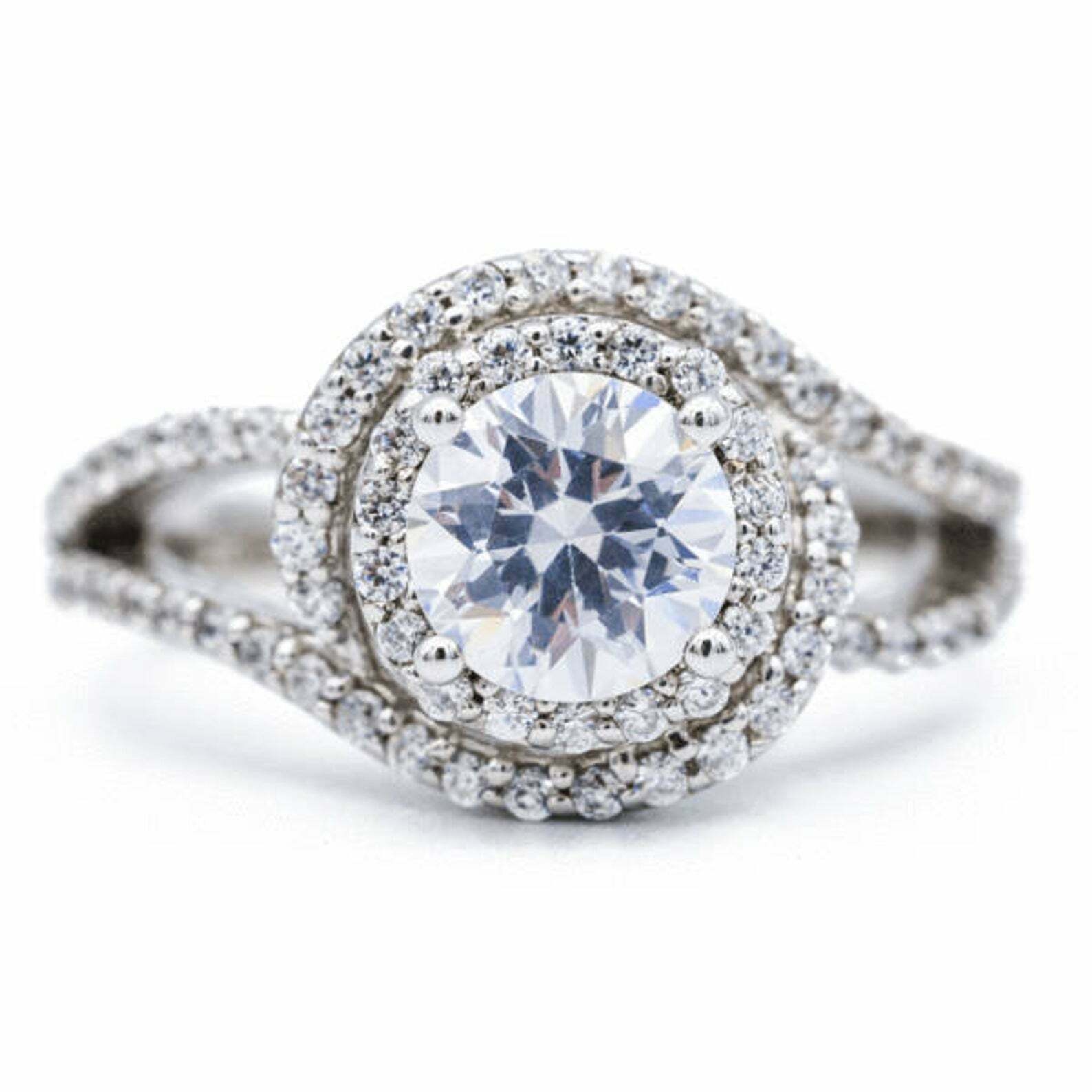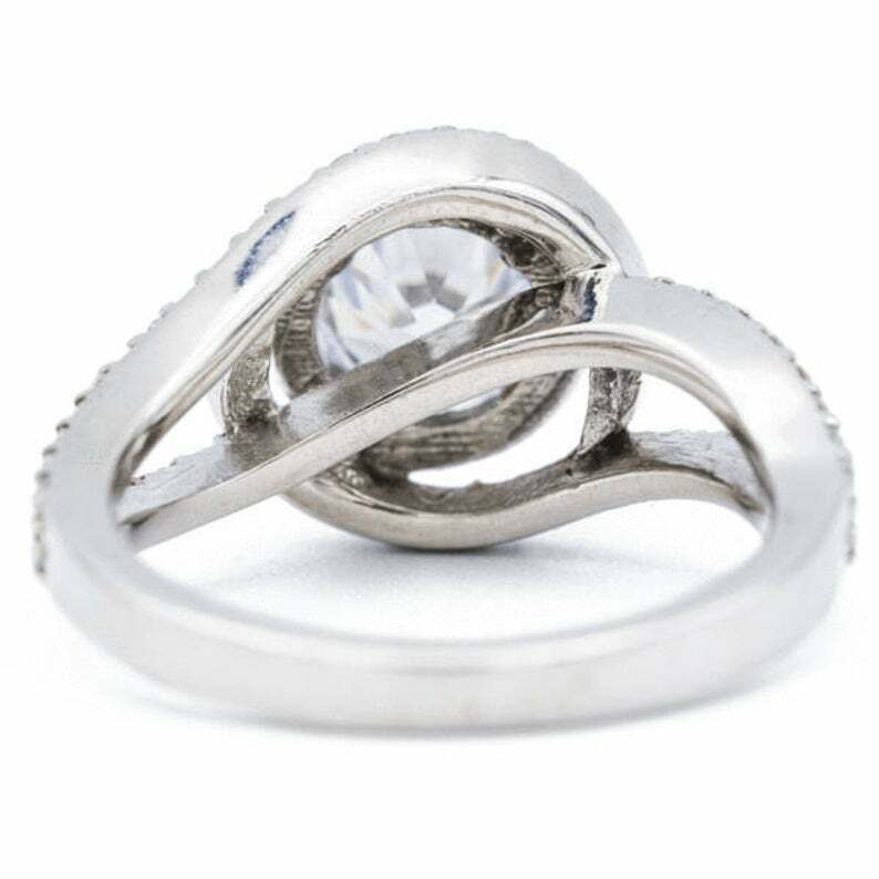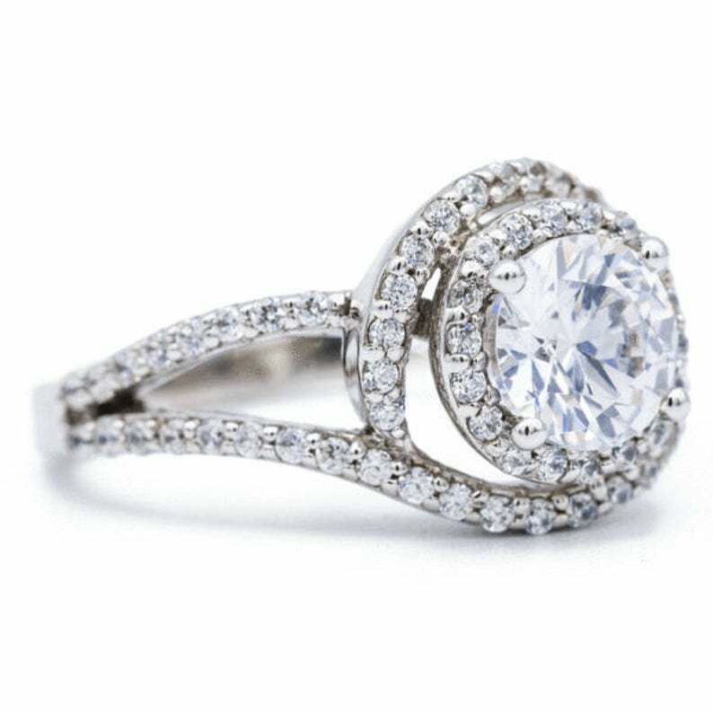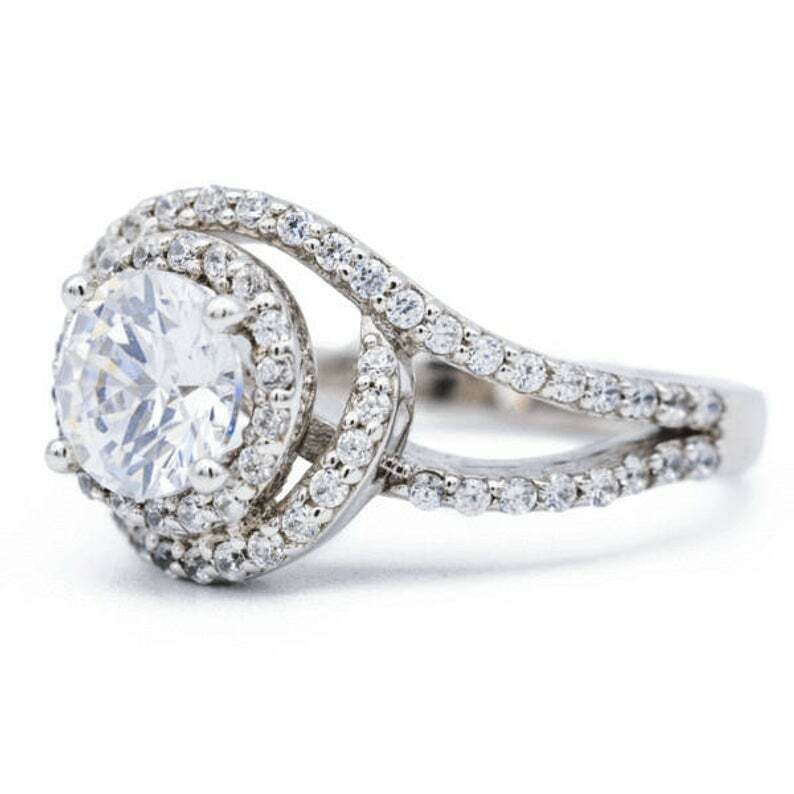 2.5ct Round Diamond Engagement Ring Split Shank Swirl Halo 14k White Gold Finish