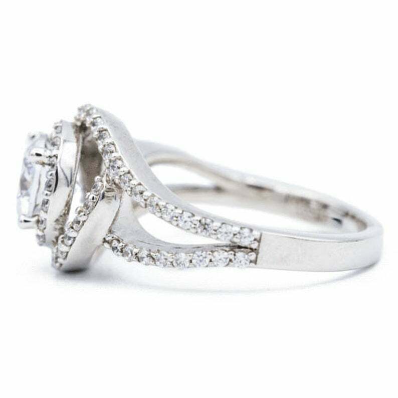 2.5ct Round Cut Diamond Engagement Ring Split Shank Swirl Halo 14k White Gold Finish