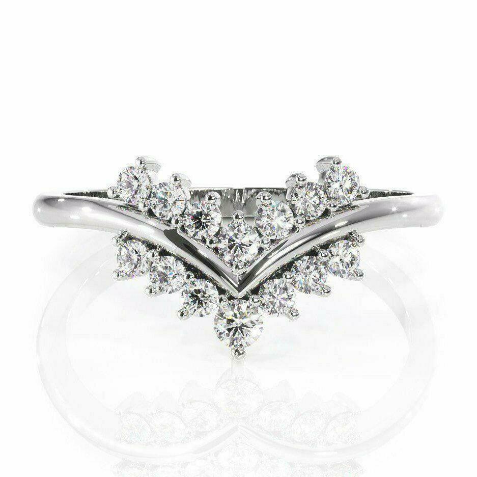 2.5ct Round Diamond Stackable Curved Crown Engagement Ring 14K White Gold Over