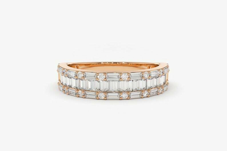 2.5ct Wedding Band Baguette Cut Diamond Channel Set Cluster 14k Rose Gold Finish