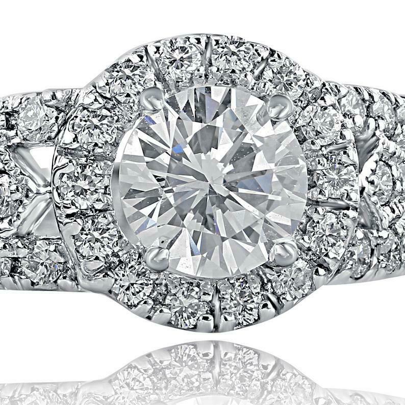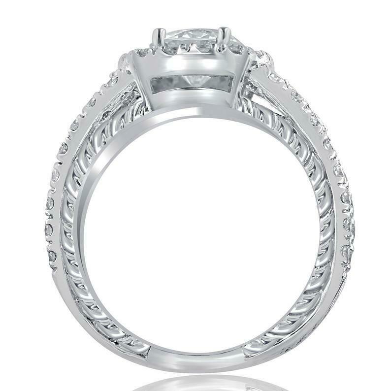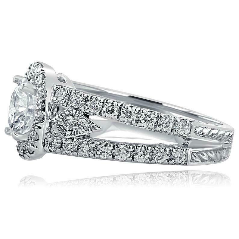 2.65ct Round Cut Diamond Engagement Ring Split Band Halo 14k White Gold Finish
