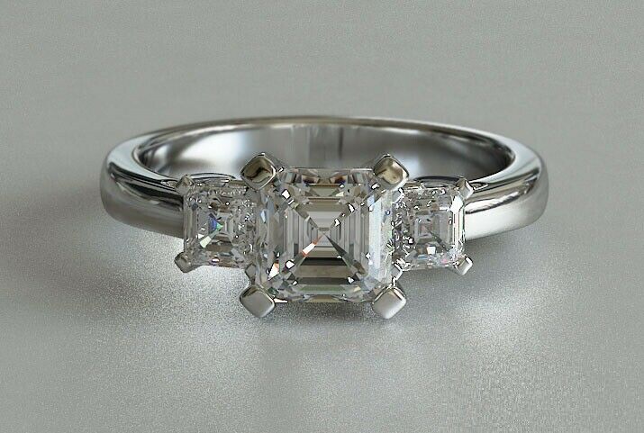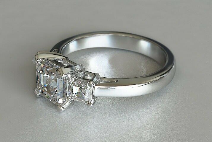 2.6ct Asscher Cut Diamond Engagement Ring Accent Trilogy 14k White Gold Finish