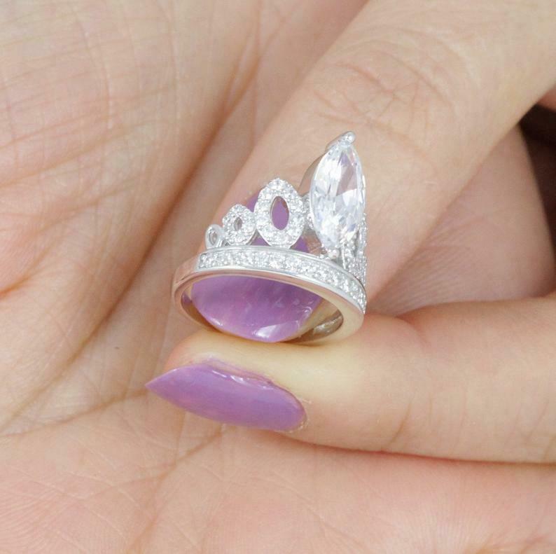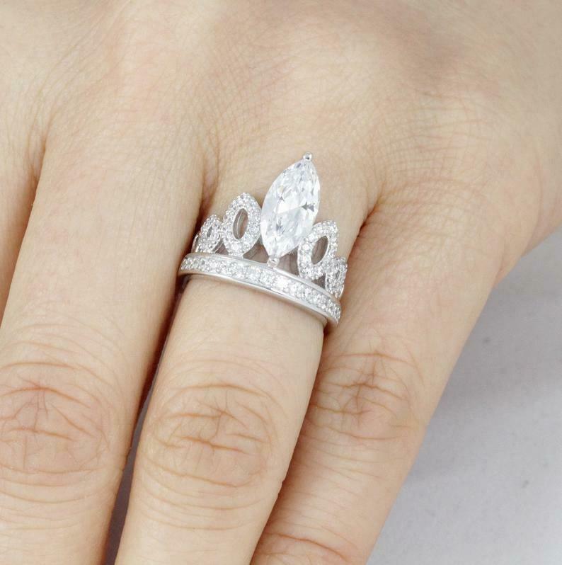 2.6ct Marquise Cut Diamond Engagement Ring Princess Crown 14k White Gold Finish