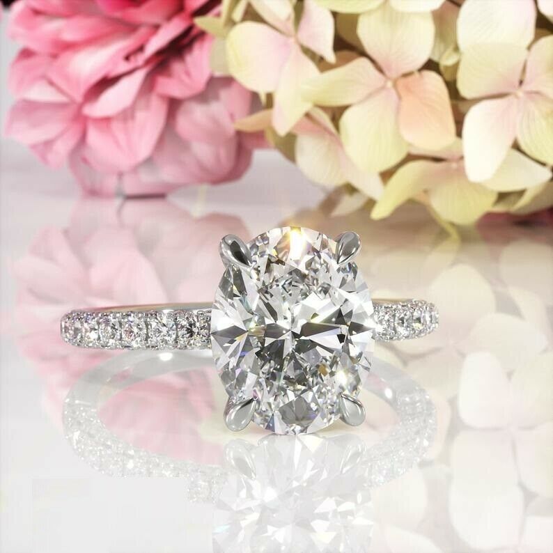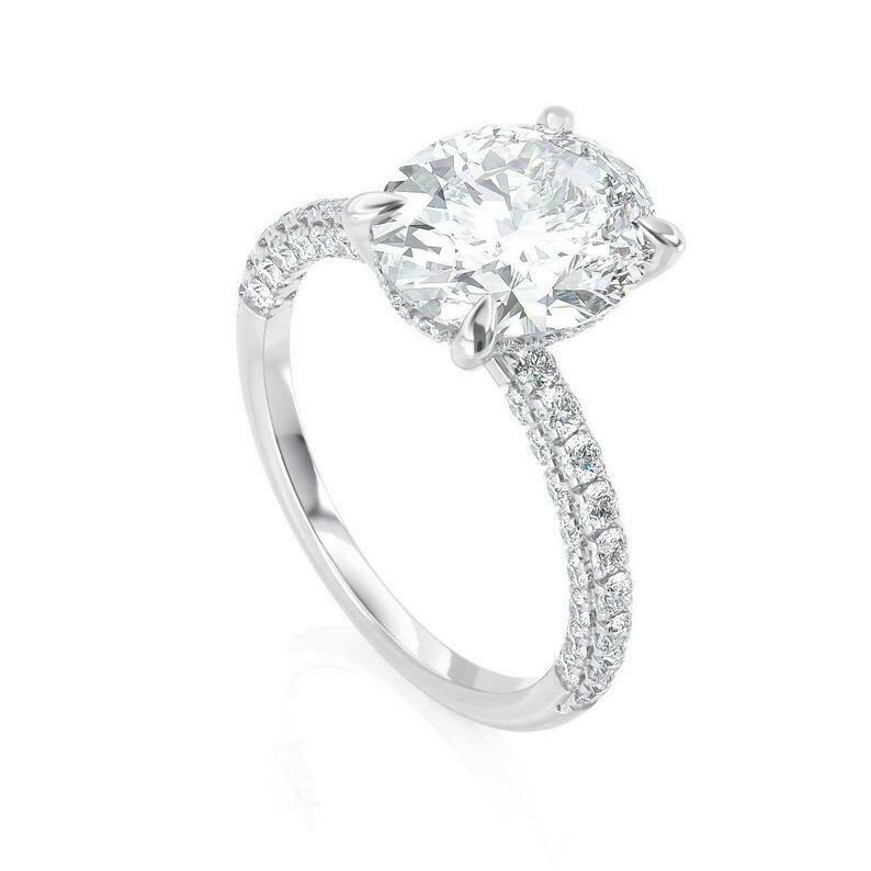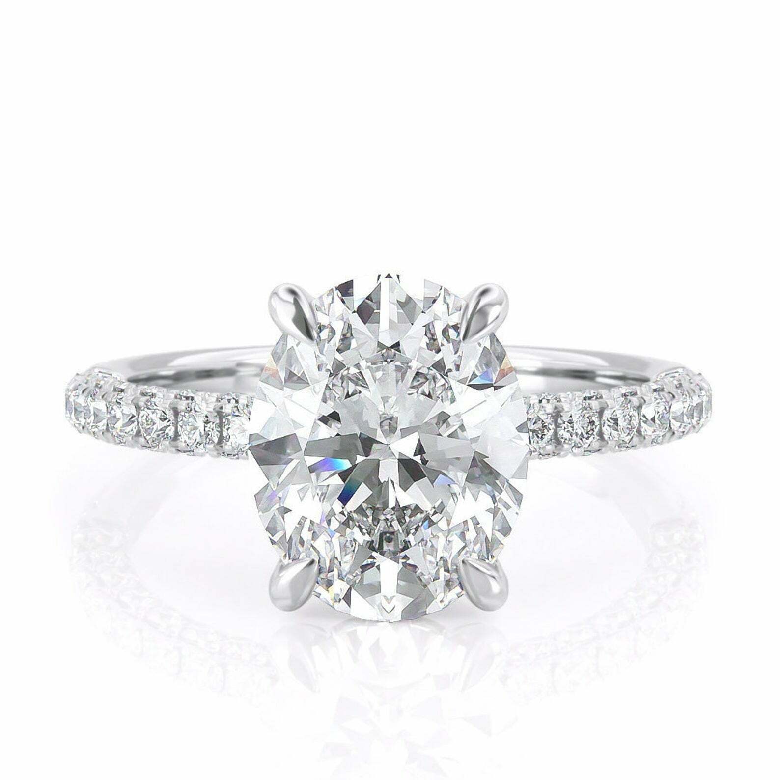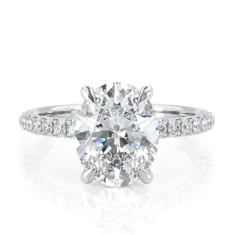 2.6ct Oval Cut Diamond Accent with Solitaire Engagement Ring 14k White Gold Over