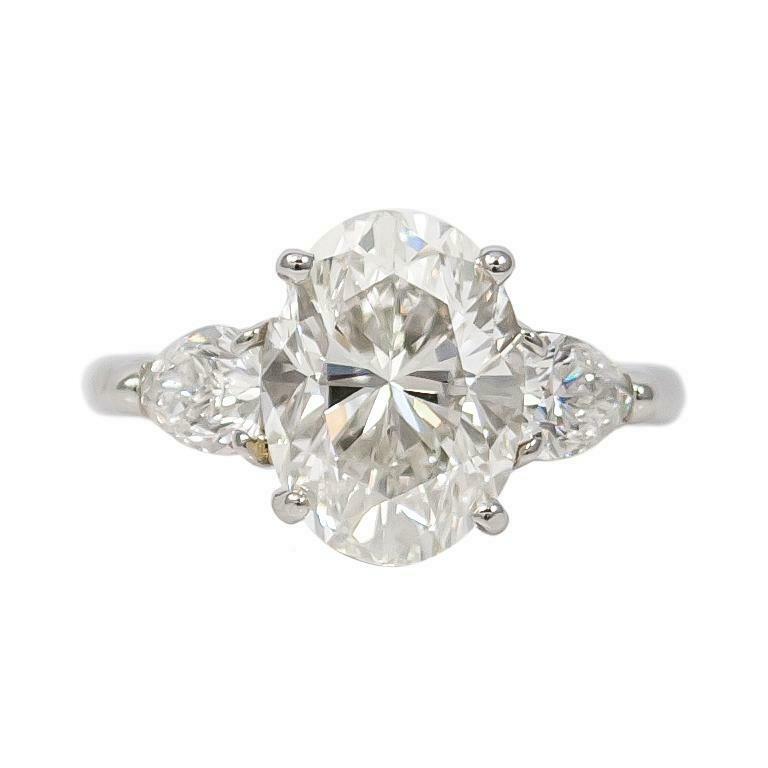 2.6ct Oval Cut Diamond Engagement Ring Trilogy Pear Accent 14k White Gold Finish