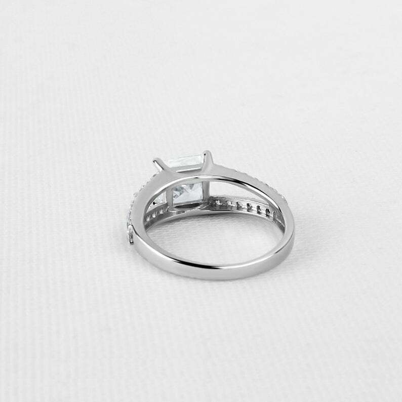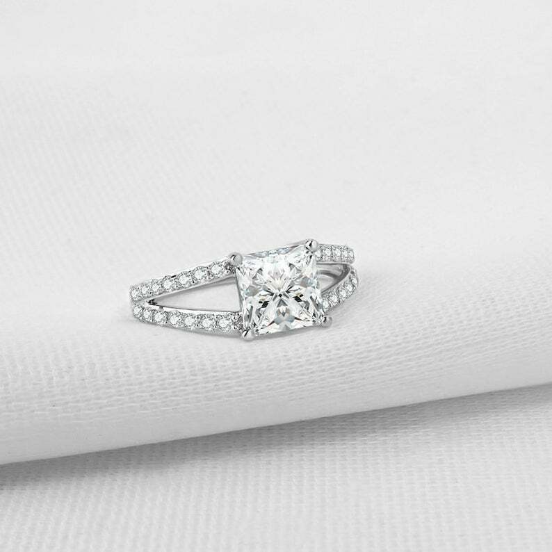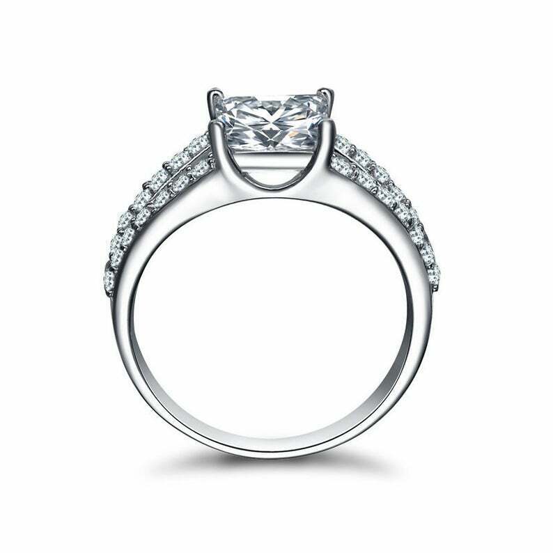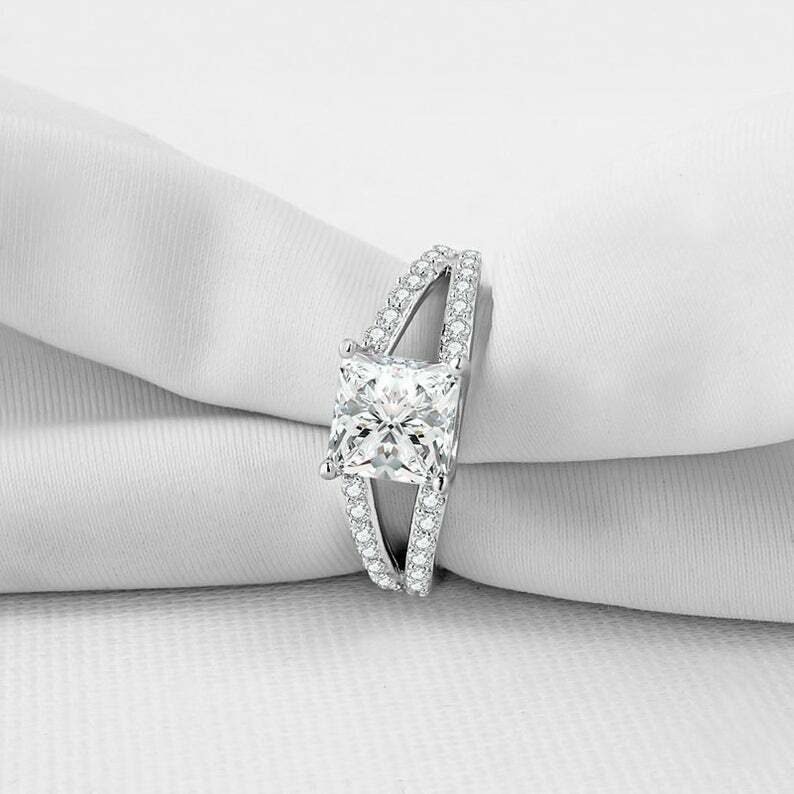 2.6ct Princess Cut Diamond Split Shank Ring 14k White Gold Finish with Round Accents