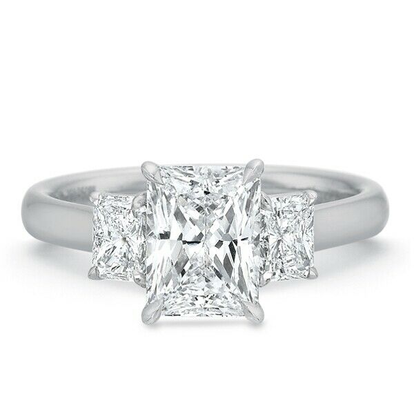 2.6ct Radiant Cut Diamond Engagement Ring Solitaire Trilogy 14k WhiteGold Finish