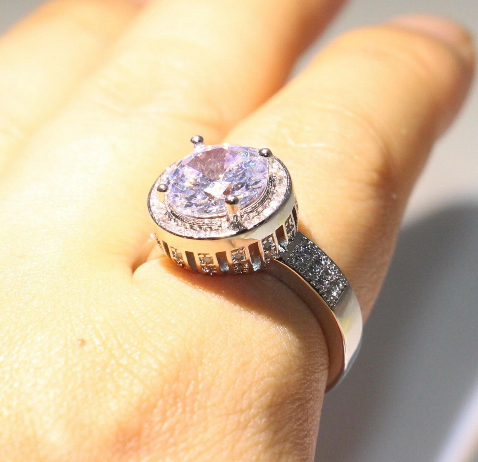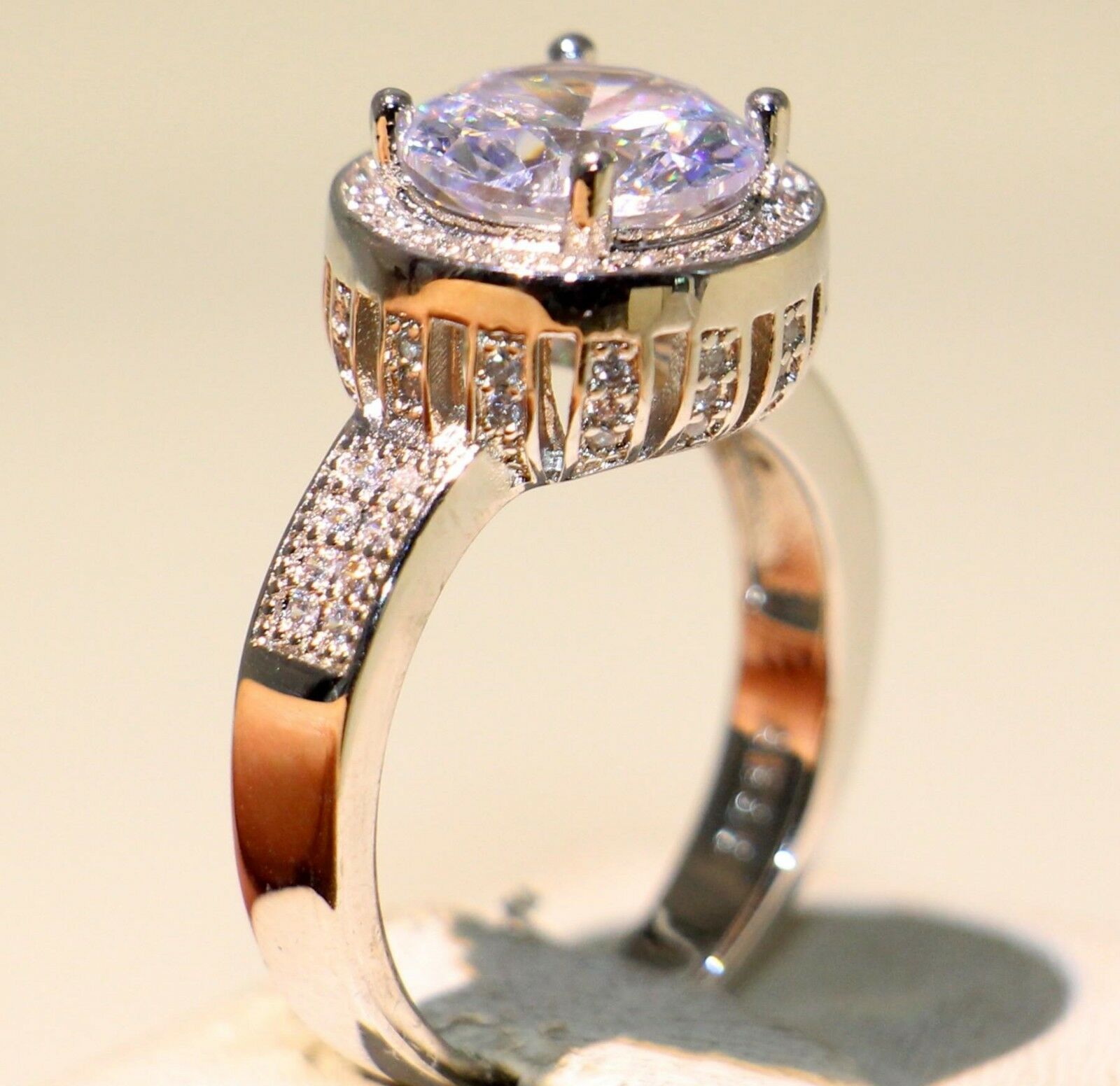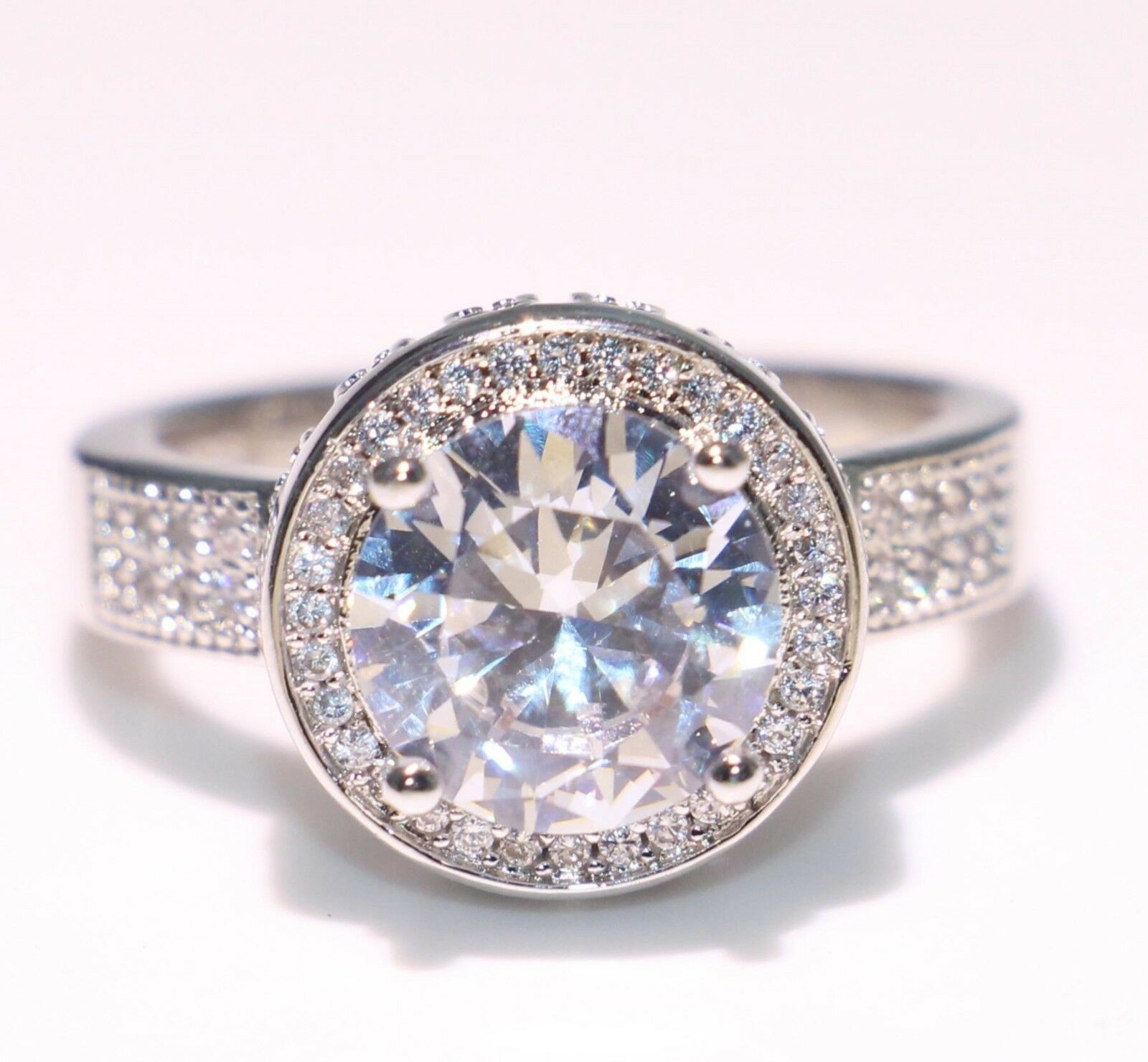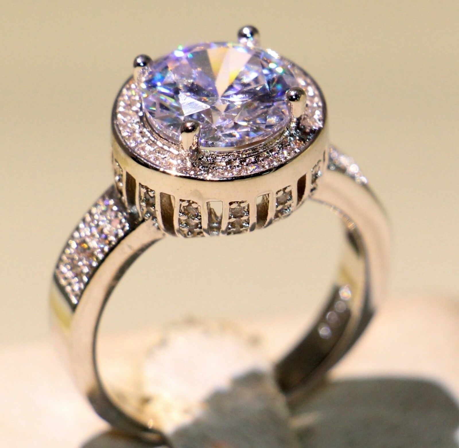 2.6ct Round Cut Diamond Engagement Ring 14k White Gold Finish Halo Solitaire