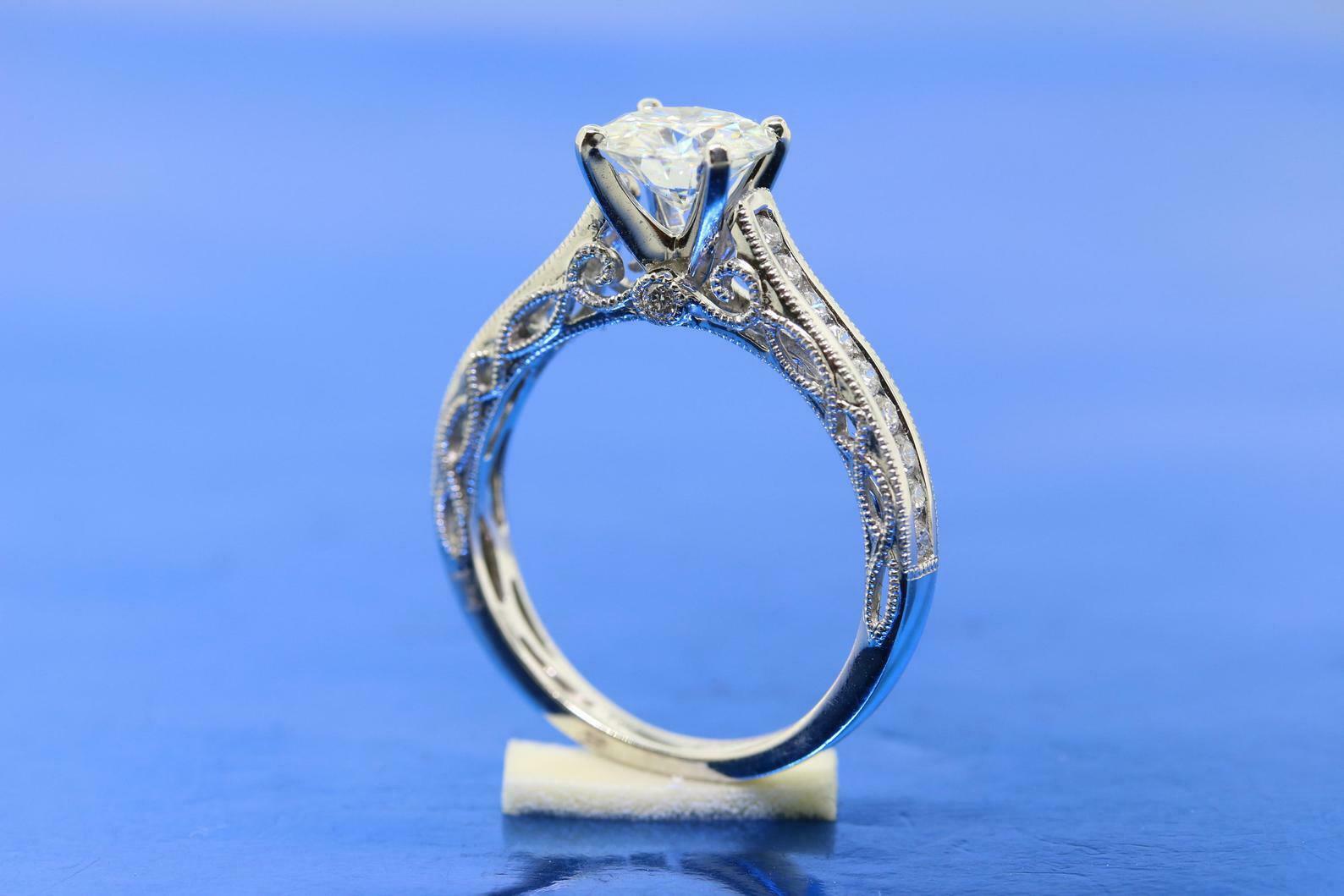 2.6ct Round Cut Diamond Engagement Ring Milgrain Bridal Set 14k White Gold Finish