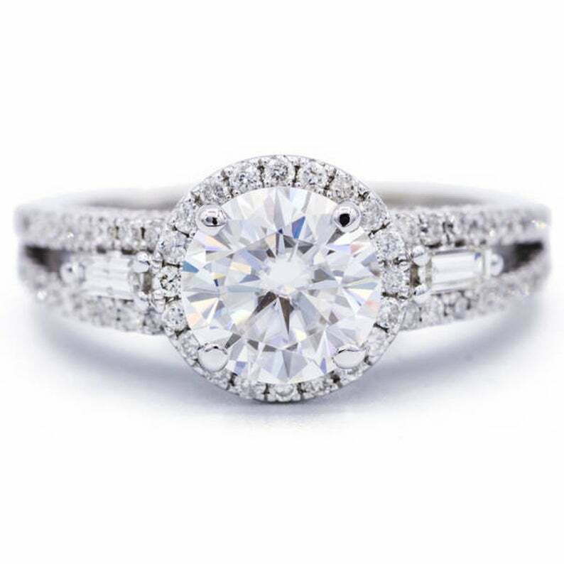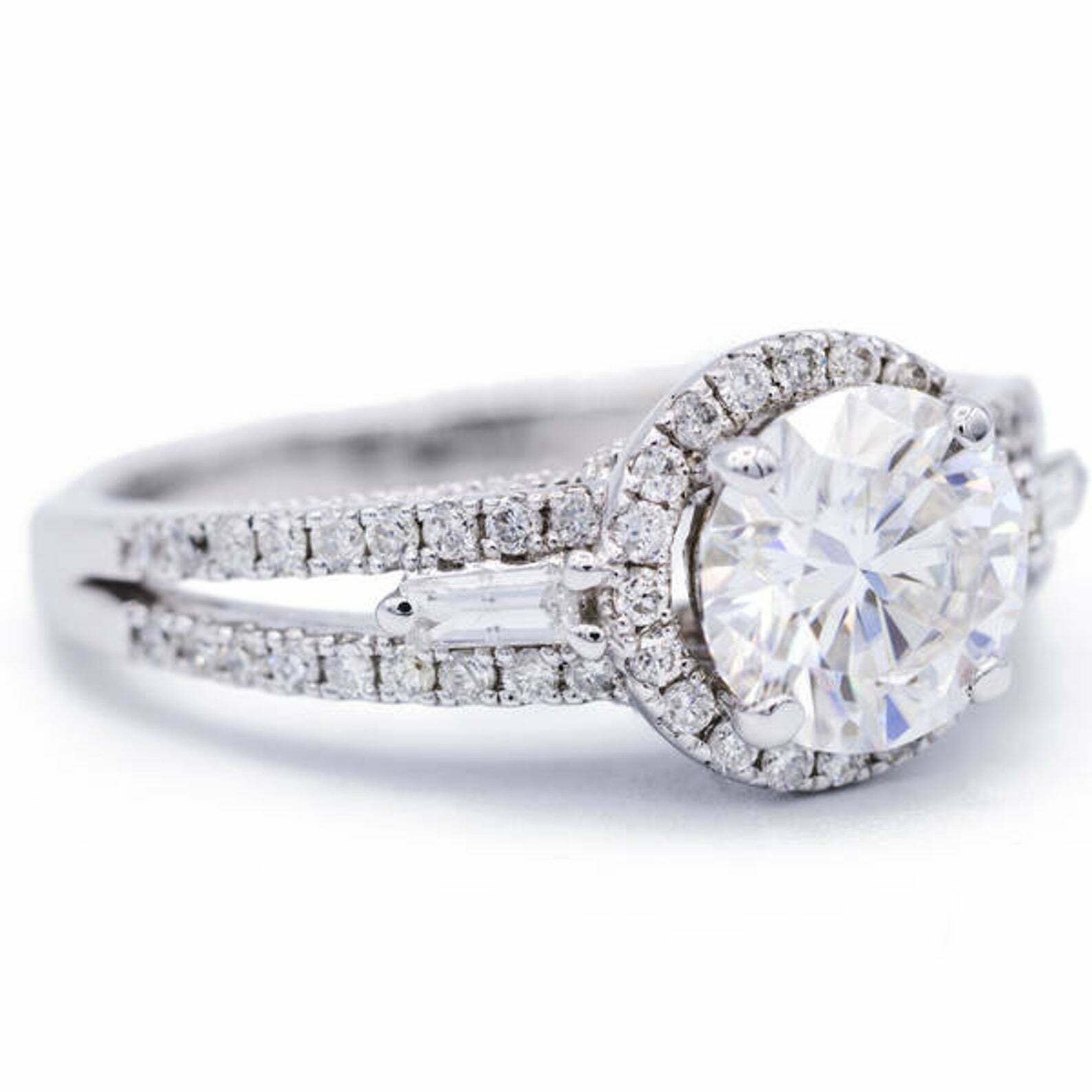 2.6ct Round Cut Diamond Engagement Ring Split Shank Halo 14k White Gold Finish