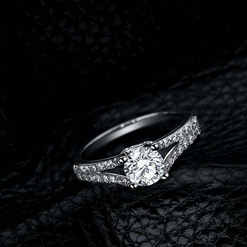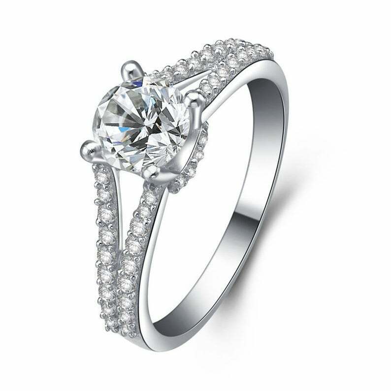 2.6ct Round Cut Diamond Engagement Ring Split Shank Solitaire 14k White Gold Over