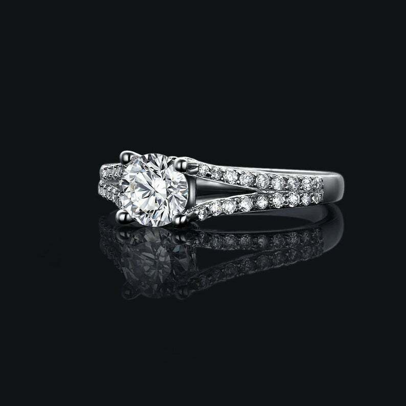2.6ct Round Cut Diamond Engagement Ring Split Shank Solitaire 14k WhiteGold Over