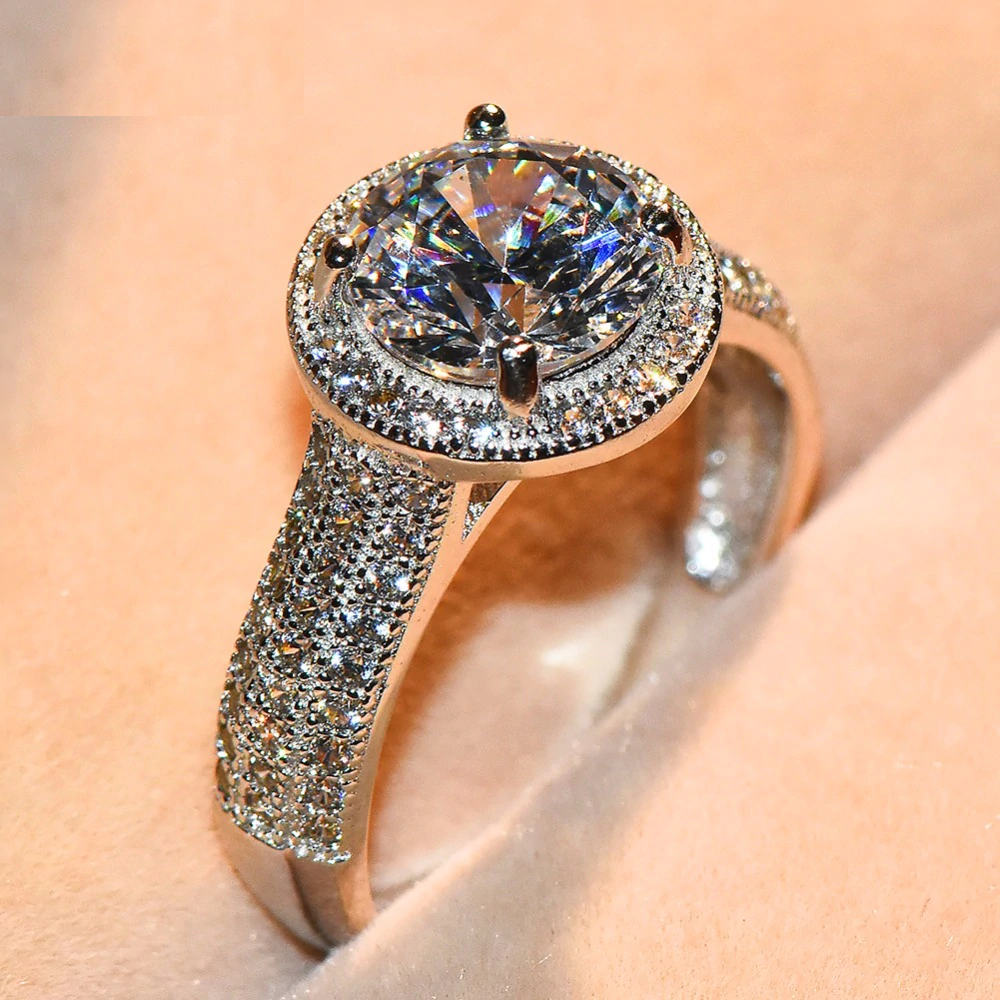 2.6ct Round Cut VVS1 Diamond Engagement Ring 14k WhiteGold Finish Halo Solitaire