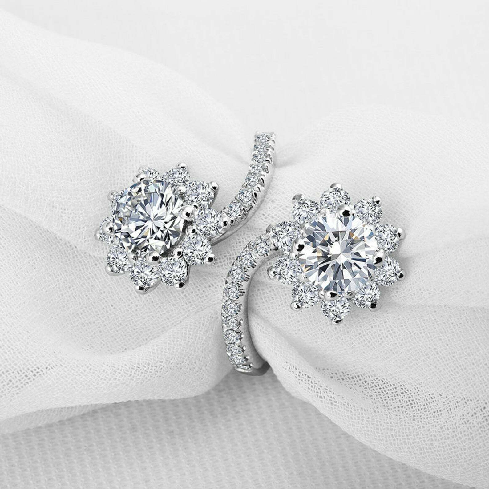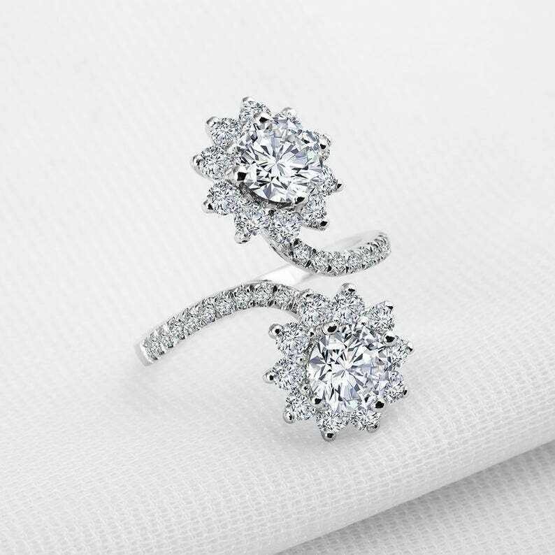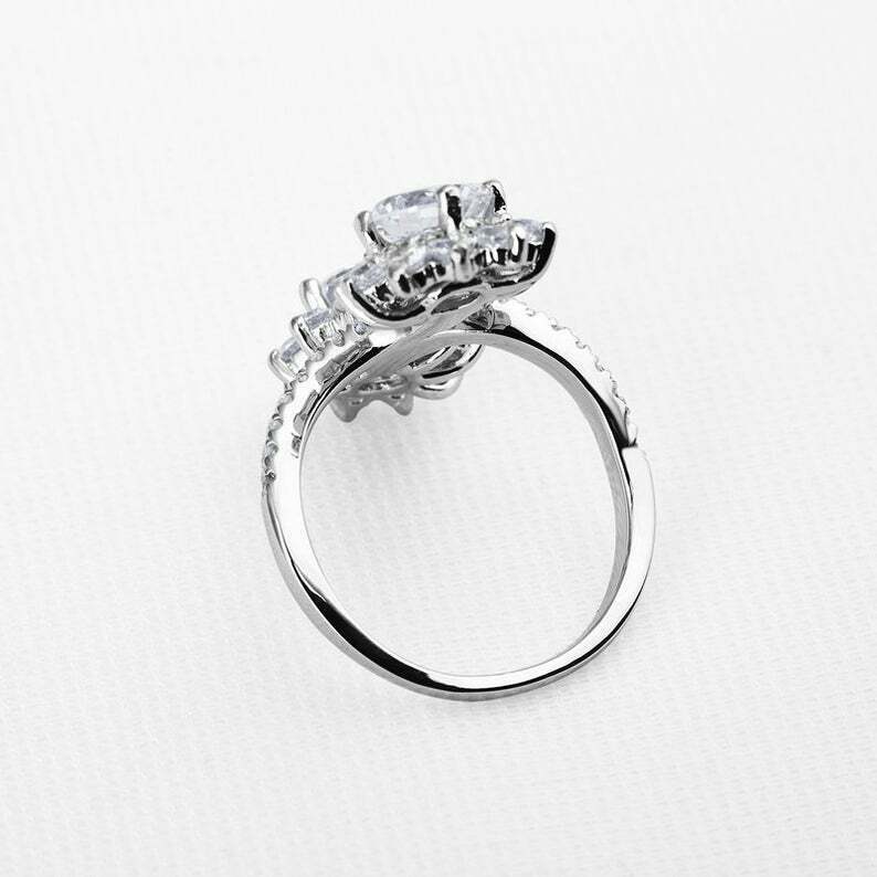 2.6ct Round Cut VVS1 Diamond Engagement Ring Flower Bypass 14k White Gold Finish