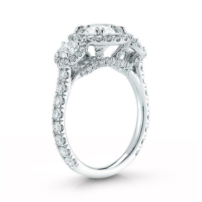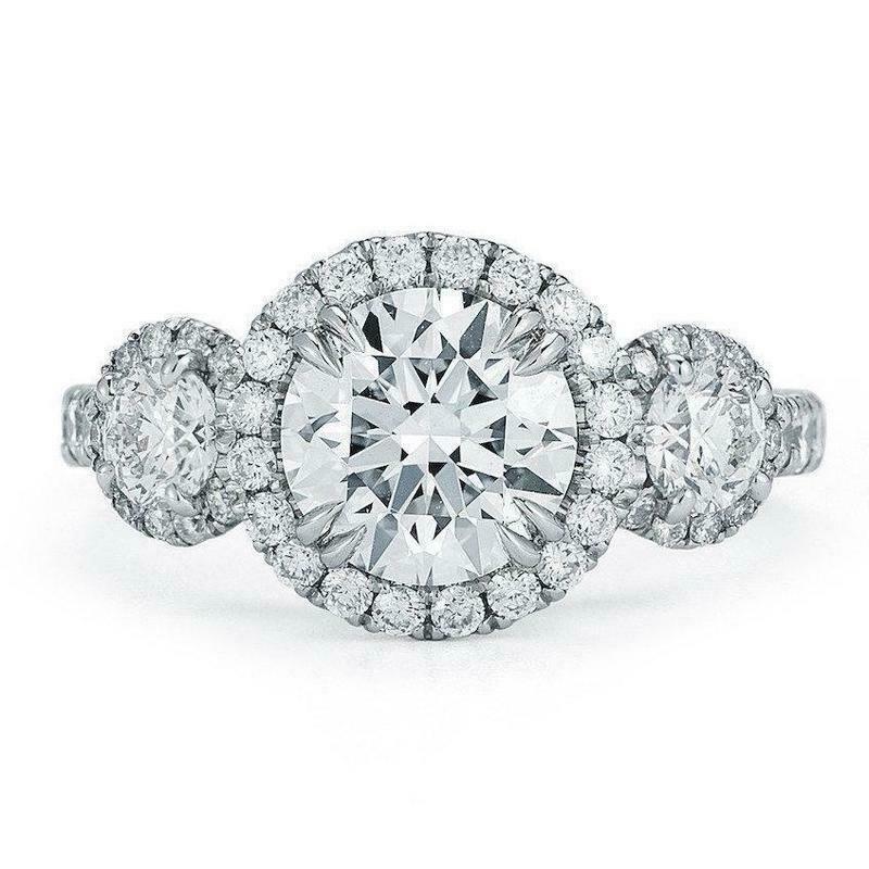 2.6ct Round Cut VVS1D Diamond Engagement Ring 14k White Gold Finish Halo Trilogy