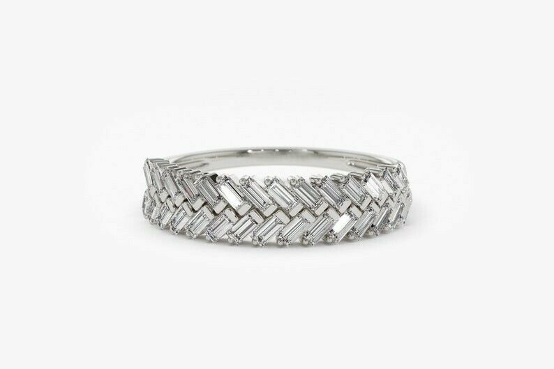 2.6ct Wedding Band Baguette Cut Diamond Dual Row Cocktail Ice 14k White Gold Finish
