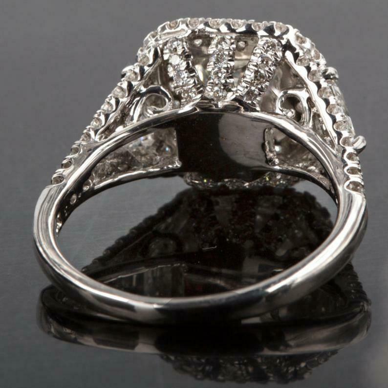 2.76ct Radiant Cut Diamond Engagement Ring Dual Halo Iced 14k White Gold Finish