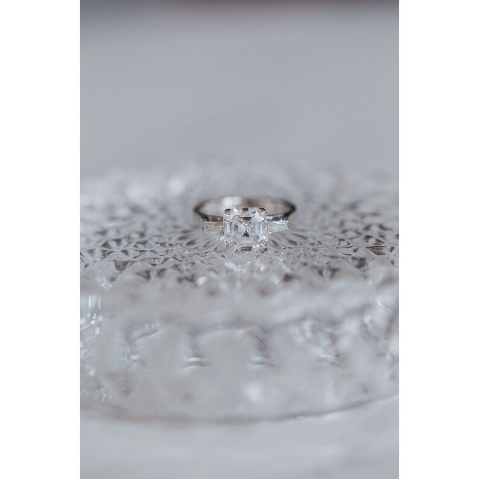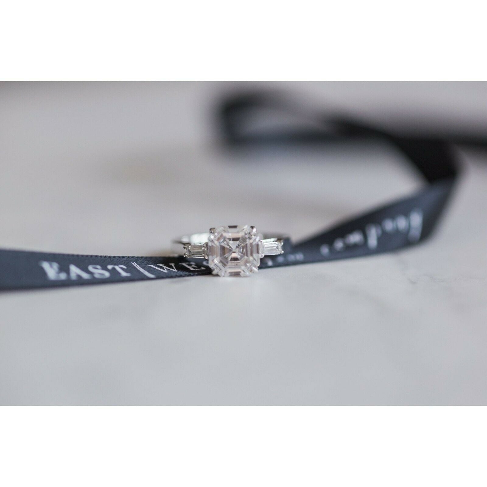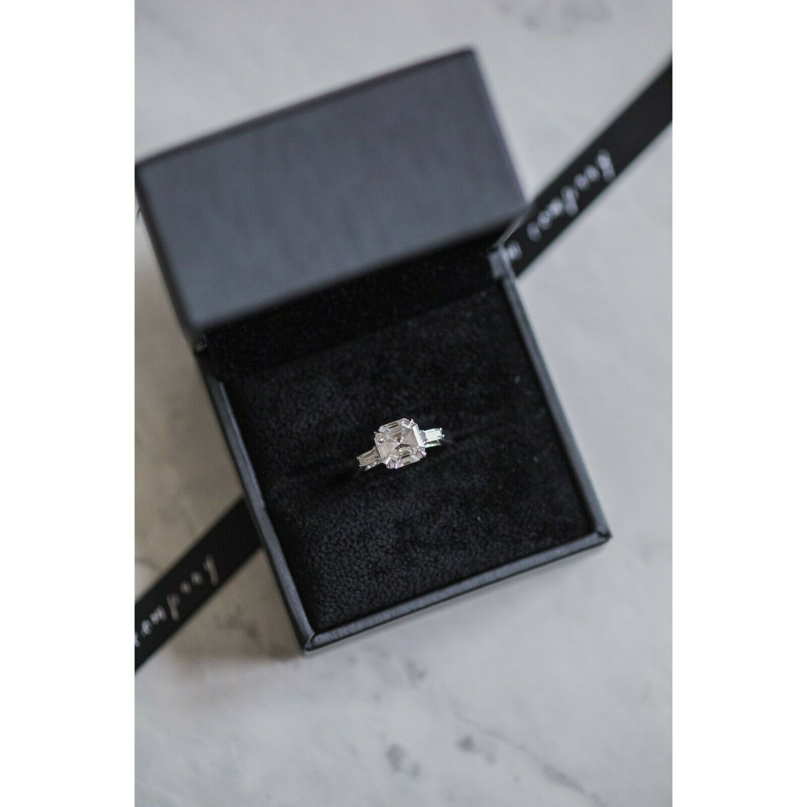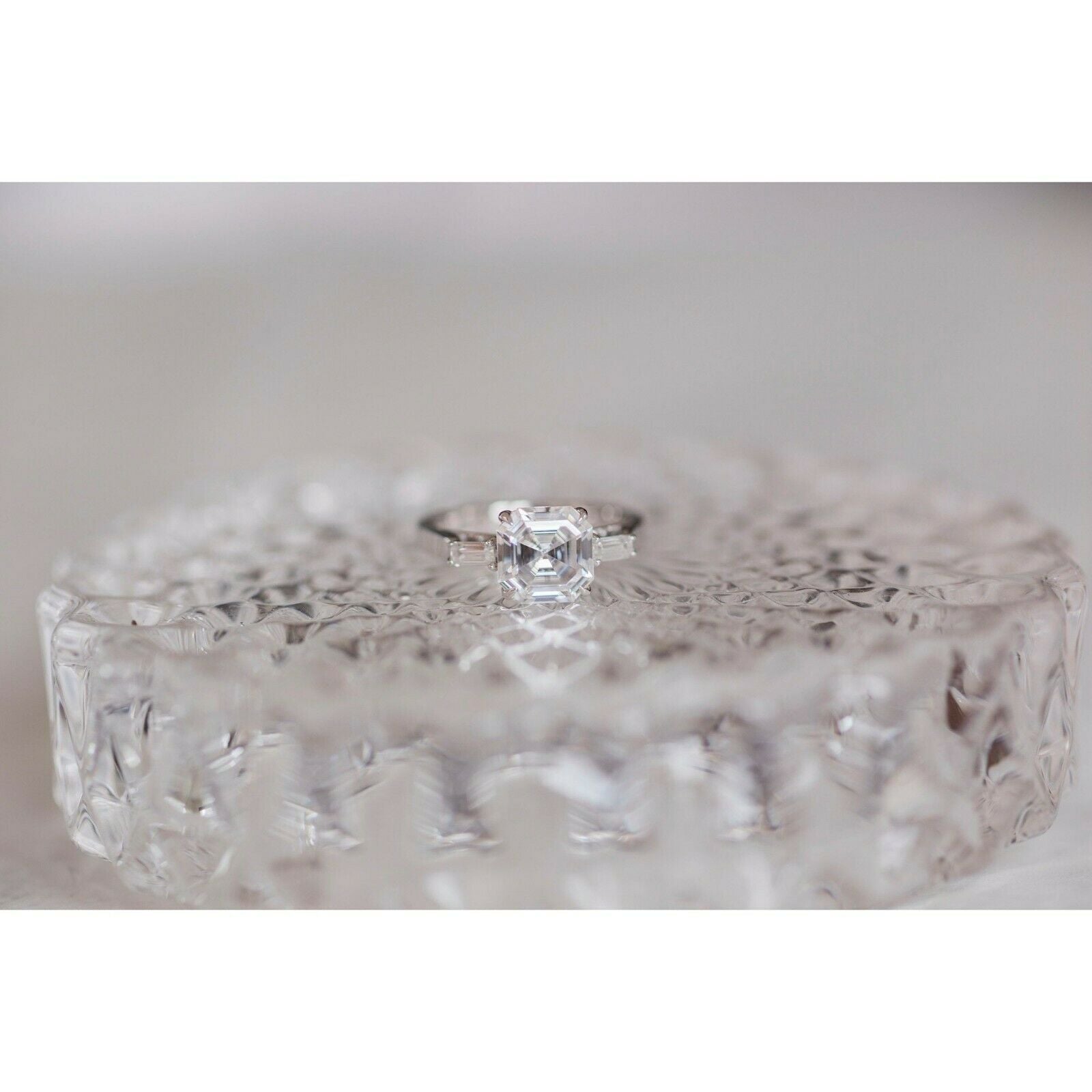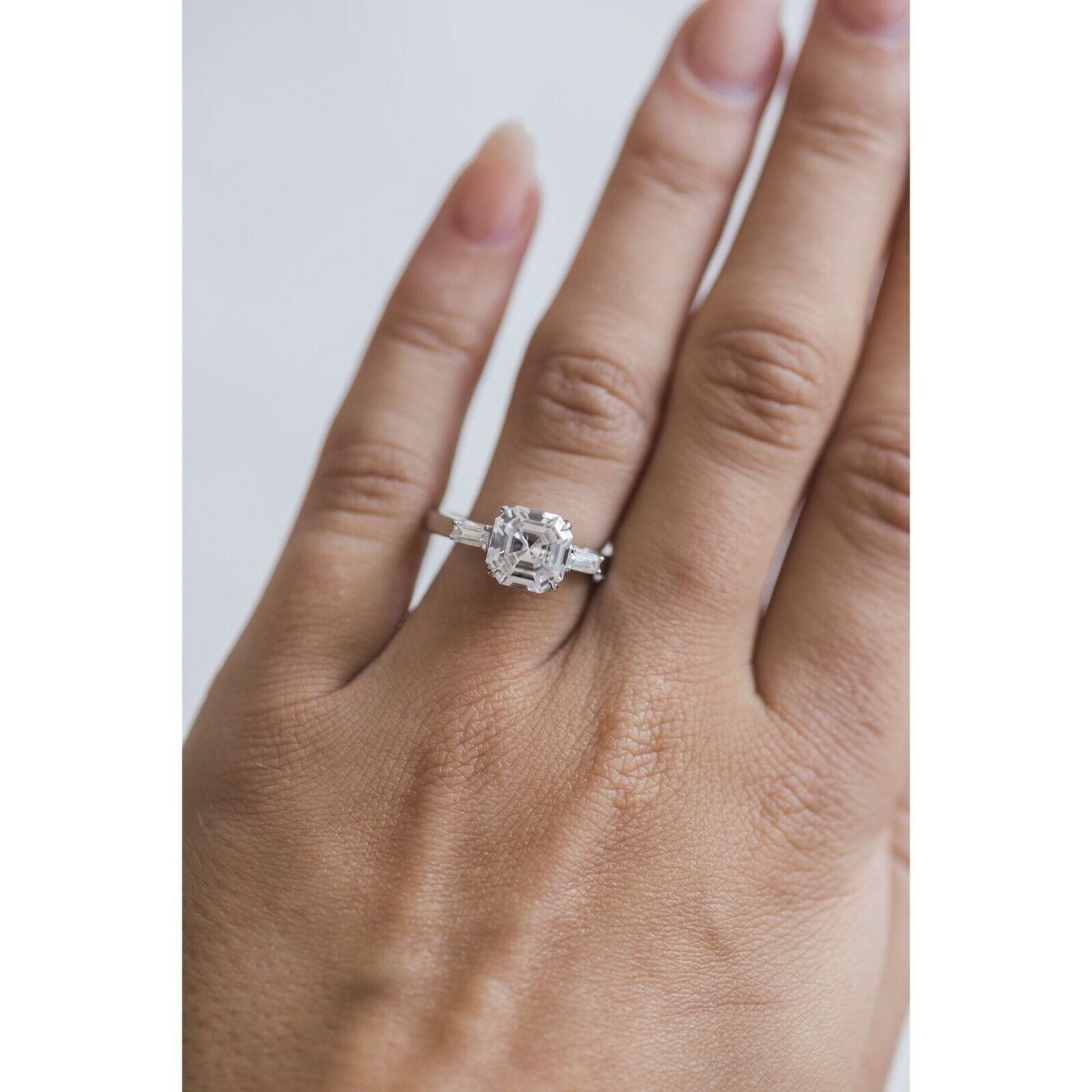 2.7ct Asscher Cut Diamond Baguette Accents Trilogy Ring 14k White Gold Finish