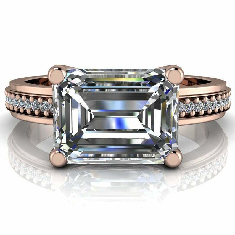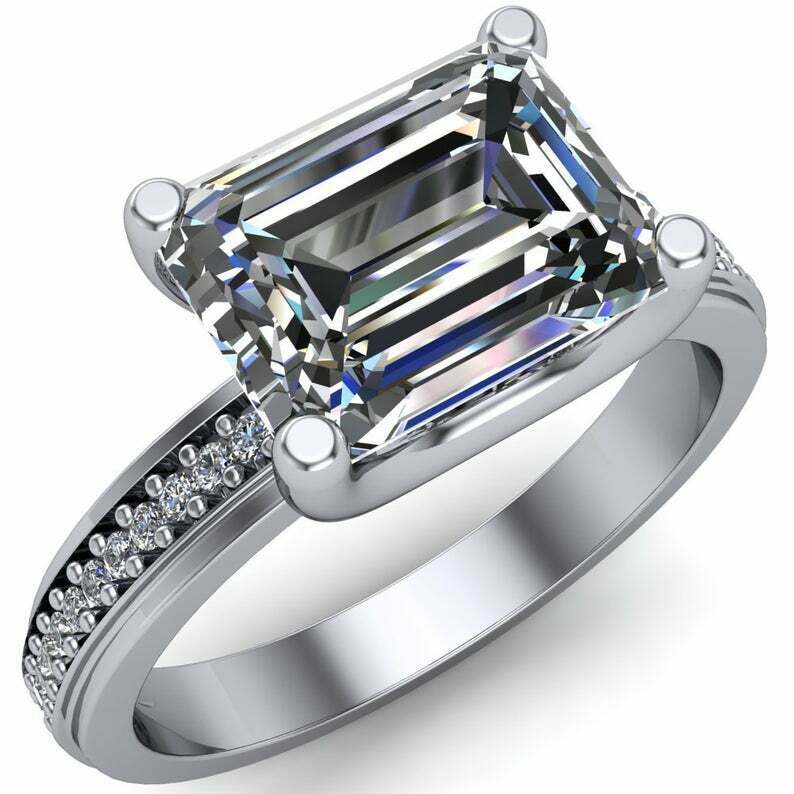 2.7ct Emerald Cut Diamond Engagement Ring 14k White Gold Over Channel Set Accents